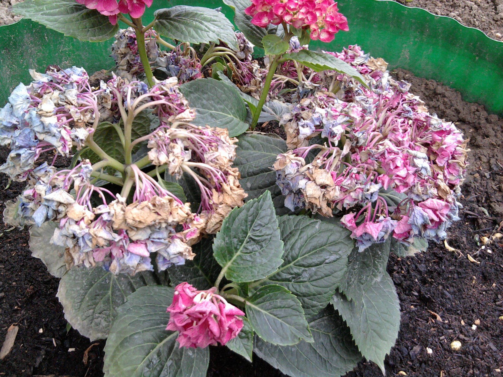 meine Hortensie habe ich seit einer Woche im Garten sitzen und jetzt habe ich ein Problem, weil er welkt und die Blüten hängen lässt; anbei Foto.