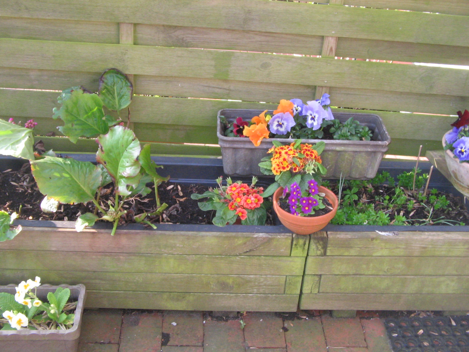 Im tiefsten Schatten neben der Haustür wächst seit Jahren sehr schön eine Hosta. Allerdings füllt sie bald den ganzen Kasten. Im gleichen Kasten wächst Waldmeister und ein kleiner Rest Buschwindröschen.