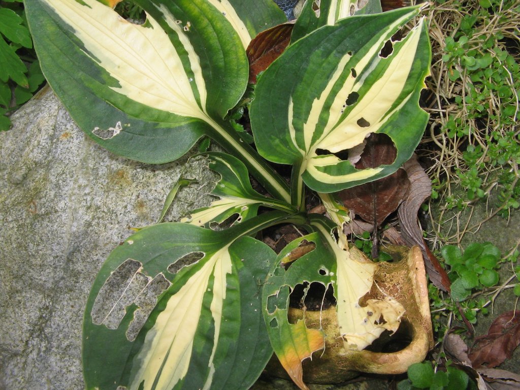 An meiner grün/weißen kleinen Hosta nagen seit einiger Zeit die Schnecken (NICHT witzig).