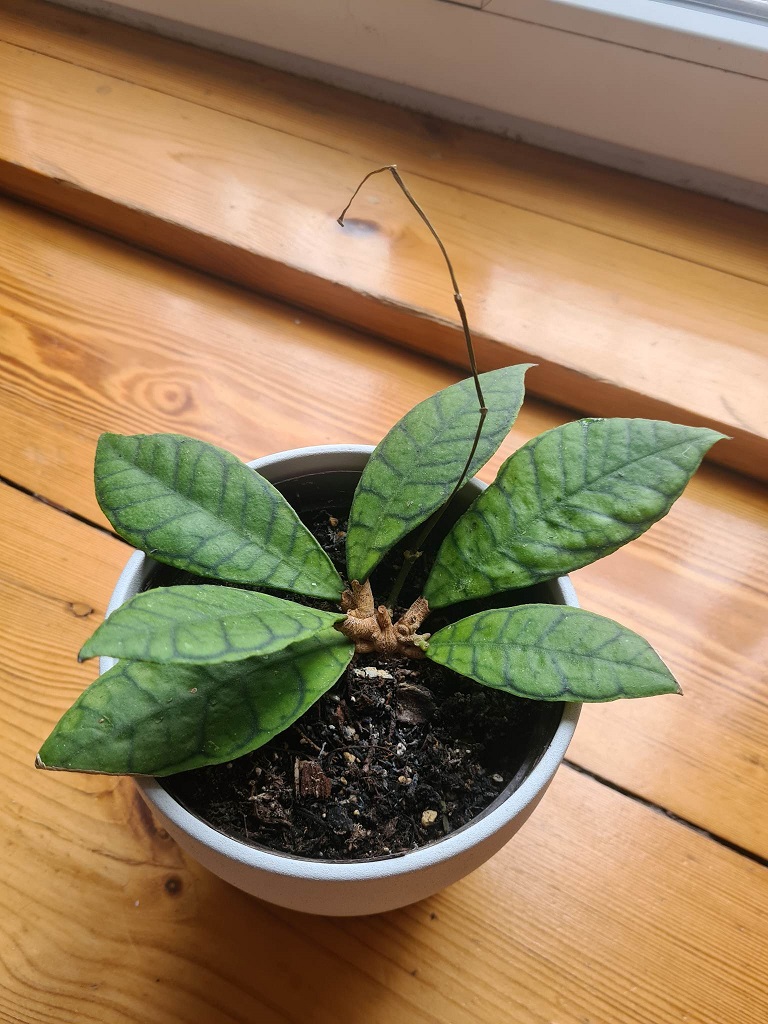 der neue Trieb meines Hoya-Callistophylla - Stecklings stirbt ohne eine neue Blattbildung ab, allerdings entsteht vermutlich auch ein neuer Trieb (roter Kreis). Woran könnte dies liegen?