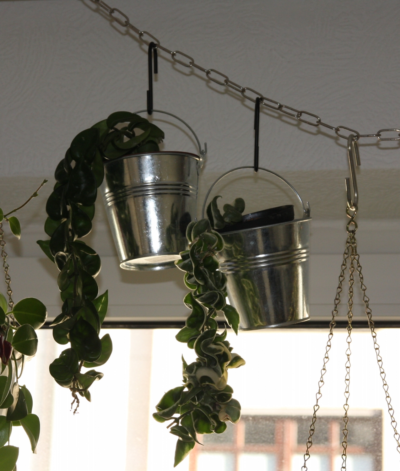 Meine Hoya Sammlung hat letzte Woche Zuwachs von einer Hoya compacta bekommen, hab sie durch Zufall im Gartencenter entdeckt für 2,99 - da konnte ich nicht nein sagen Viiiiel zu kleiner Topf & außerdem war die auf so einen Rundbogen aufgewickelt, allerdings mit dem Kopf schon fast wieder in der Erde, so dass dieser Wurzelansätze hat Gestern hab ich sie entwirrt, umgetopft und an ihren vorläufigen Endplatz neben der compacta variegata gehängt..
