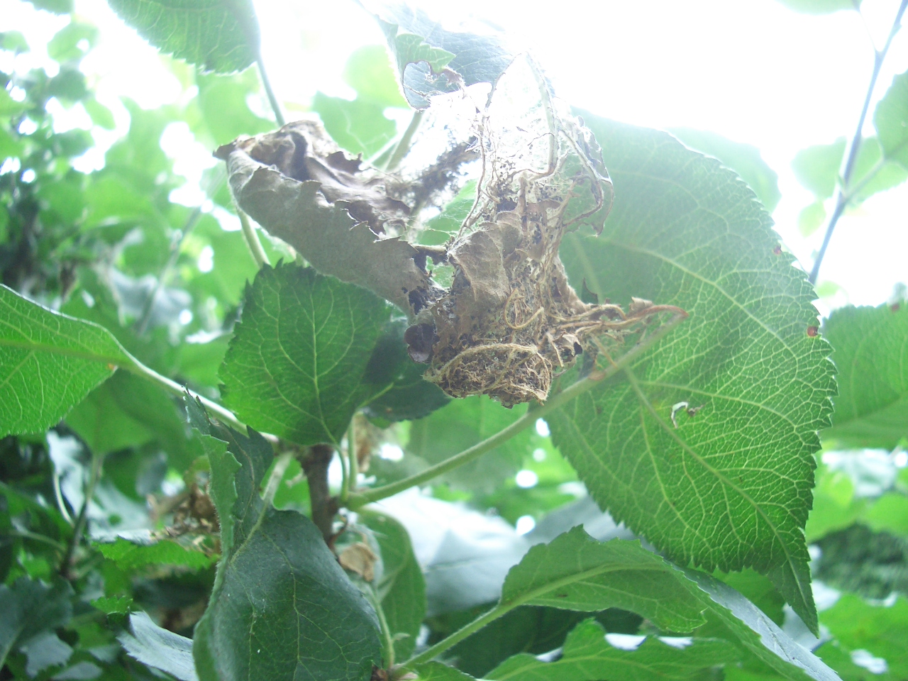 Es handelt sich um einen Nadelbaum, der stark bräunelt; ein Birnbäumchen, das wir gepflanzt haben, das seit ca. 2 Jahren bei uns steht und komische Flecken bekommt und um einen Apfelbaum, der zwar, seit wir auch vor ca. 2 Jahren ein weiteres Bäumchen, tüctig Äpfel trägt,diese aber in diesem Jahr in kleinstem Stadium bereits abwirft - bei dem habe ich dann diese Netzdinger entdeckt, die ganz unten zu sehen sind...