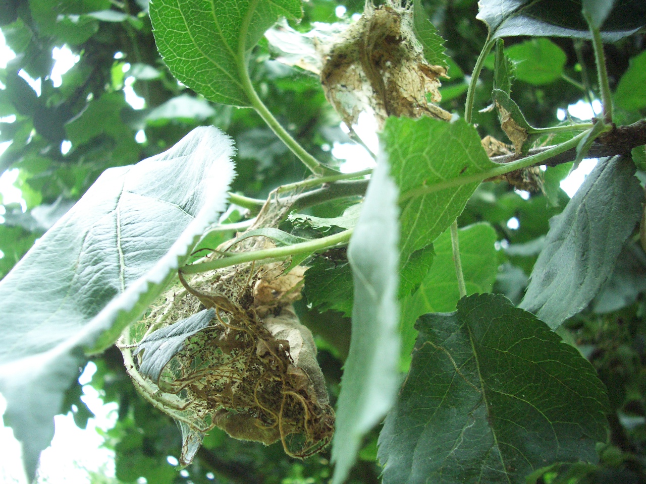 Es handelt sich um einen Nadelbaum, der stark bräunelt; ein Birnbäumchen, das wir gepflanzt haben, das seit ca. 2 Jahren bei uns steht und komische Flecken bekommt und um einen Apfelbaum, der zwar, seit wir auch vor ca. 2 Jahren ein weiteres Bäumchen, tüctig Äpfel trägt,diese aber in diesem Jahr in kleinstem Stadium bereits abwirft - bei dem habe ich dann diese Netzdinger entdeckt, die ganz unten zu sehen sind...