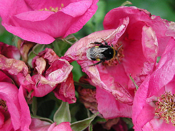 ich finde hummeln auch total knuffig. hab in meinem garten auch jede menge pflanzen, die ich speziell nur für die hummeln und bienen gepflanzt habe. leider hab ich es nun schon zweimal geschafft, von einer gestochen zu werden. ich habe rund um mein wasserfaß jede menge katzenminze und lavendel sitzen und den lieben die hummeln. da passiert es schon mal, daß sich eine bedrängt fühlt, wenn ich wasser zum gießen hole. im gegensatz zu bienen- oder gar wespenstichen tun hummelstiche aber viel weniger weh. es pieckst mal kurz und brannt ein bißchen, aber lang net so schlimm wie bei anderem stechgetier.