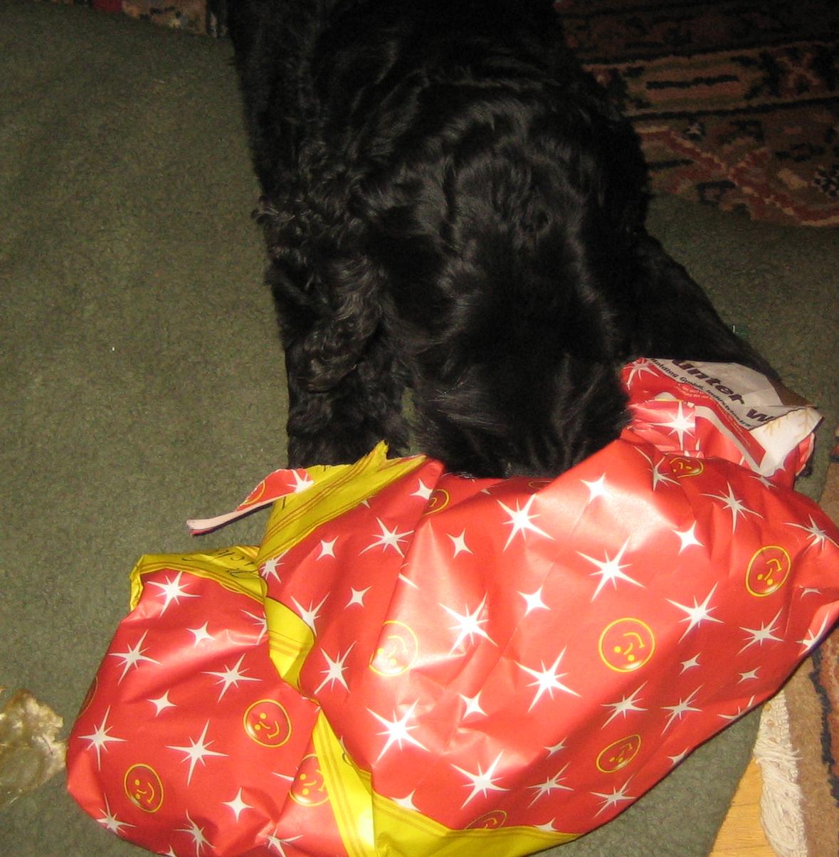 Außer einem Festtagsmenue kam auch ein neuer Kumpel dazu,aber das Auspacken macht ihm immer am meisten Spaß (auch unsere Geschenke)