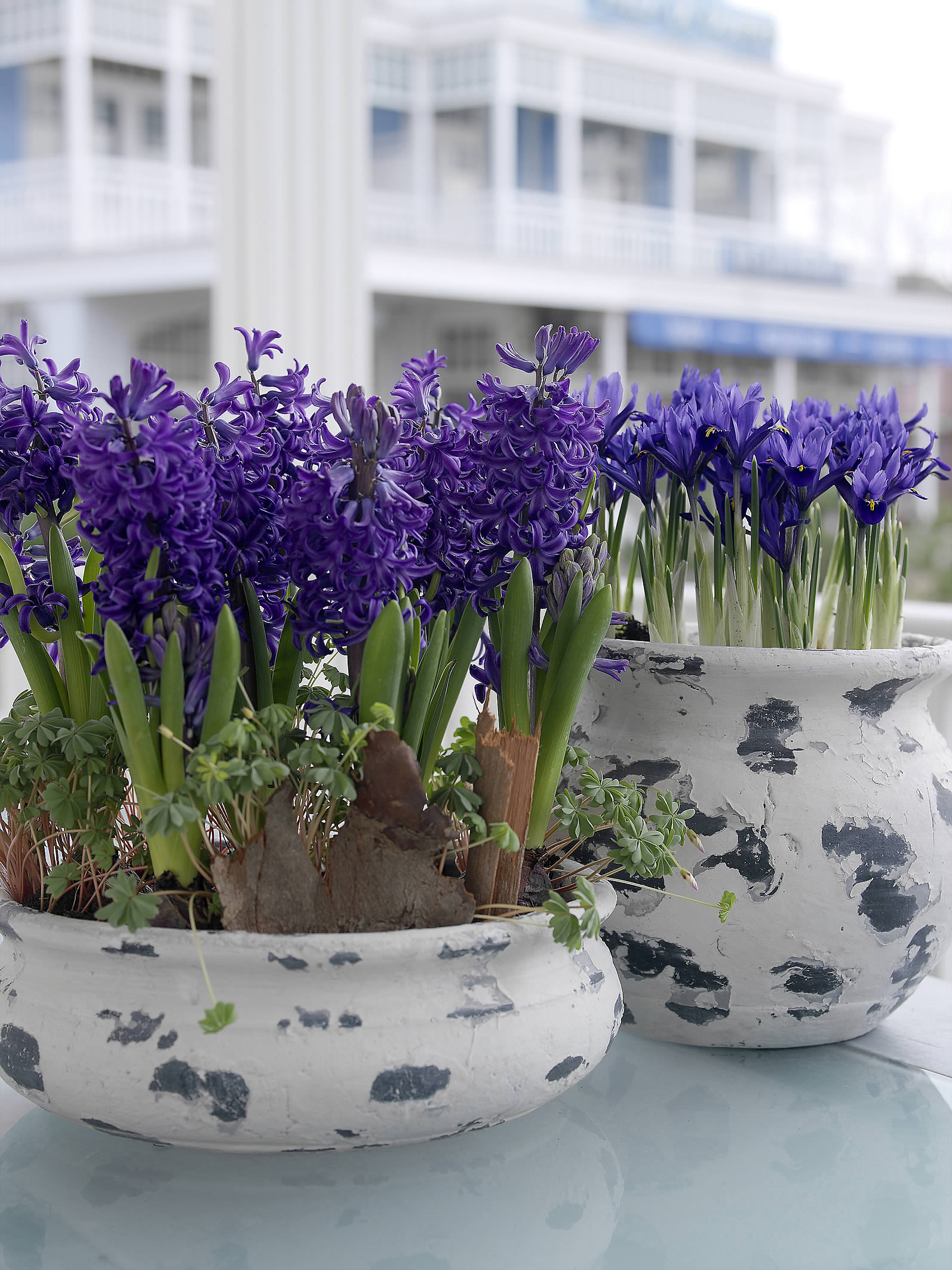 Hyazinthen sind ganz besondere Frühlingsboten. Sie bringen wie keine andere Zwiebelblume Duft und Farbe in den Frühlingsgarten. Ihre üppigen Blütentürme bestehen aus vielen sternförmigen, seidig glänzenden Einzelblüten, die einen intensiven Duft verströmen. Die Zwiebeln werden im Herbst gepflanzt und öffnen dann je nach Witterung im April ihre Blüten. Wer die Pflanzzeit verpasst hat, kann jetzt im Frühjahr Hyazinthen in Töpfen kaufen. Diese Zwiebelblumen können sowohl in den Garten als auch in Gefäße auf Balkon und Terrasse gepflanzt werden. In einen schönen Übertopf gestellt oder als kleine Gruppe zusammengepflanzt, bringen sie den Frühling überall hin.