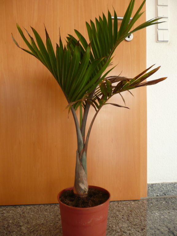 vom Internet erworbene Hyophorbe lagenicaulis (Größe ca. 1 Meter). Mir ist allerdings aufgefallen, dass 3 von 4 Wedel der Palme von außen nach innen braun werden (letztes Blatt ist fast völlig braun). Ich weiß nicht ob das normal ist (ein Bild kann ich euch nicht zeigen da es derzeit bei mir Schwierigkeiten beim Hochladen gibt). Es ist auch so, dass der Stamm der Palme ziemlich wackelt.