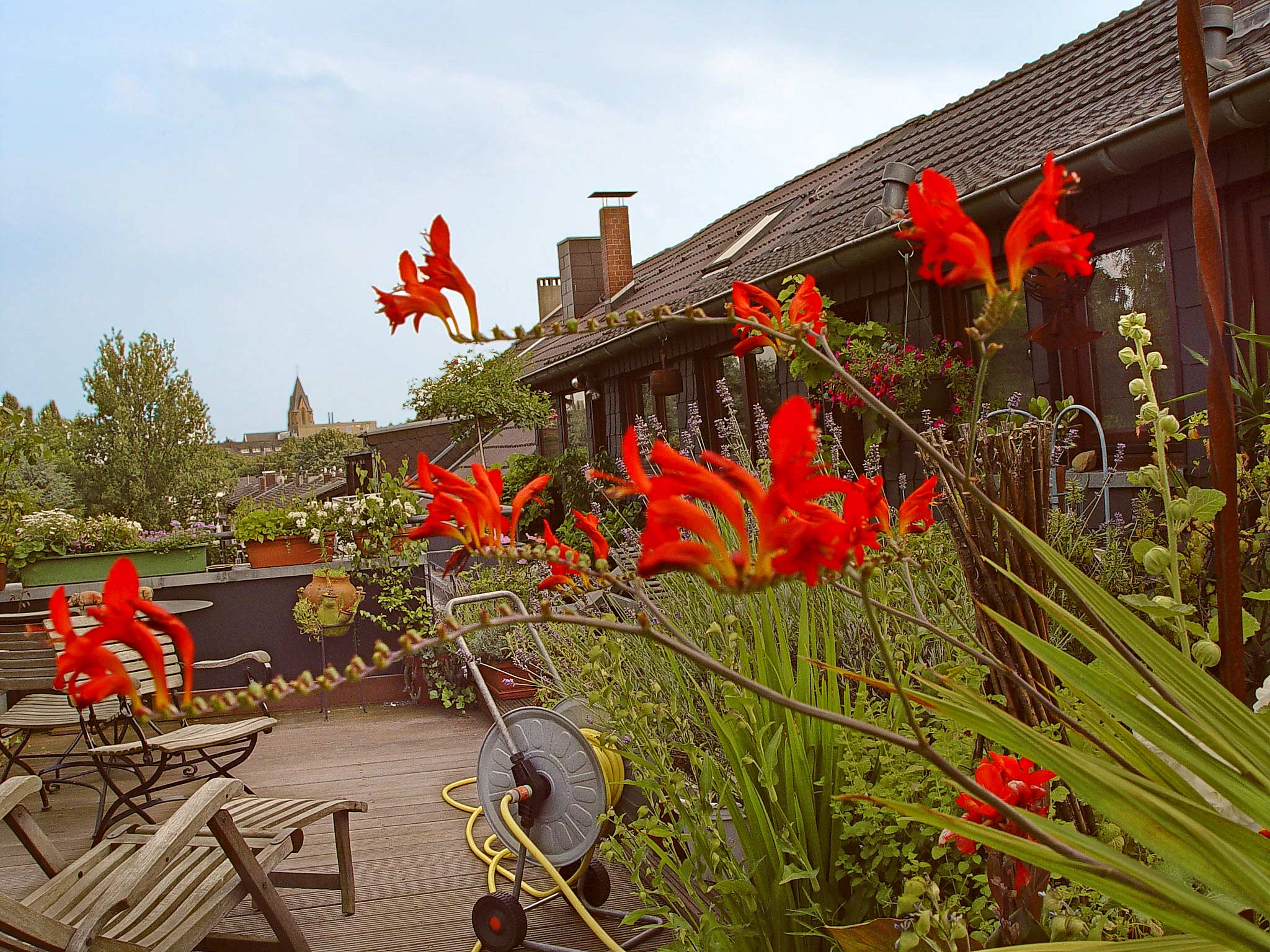Etwas technischer wird?s mit Zeitschaltuhr oder Bewässerungscomputer. Diese Geräte regulieren mit Hilfe eines Magnetventils den Zufluss über den Wasserhahn. Das Wasser strömt dann jeden Tag zur programmierten Zeit durch einen Schlauch in kleinere Tropfschläuche, die direkt in die Töpfe und Kübel münden. Ideal sind regulierbare Tropfstellen, die sich auf den Wasserverbrauch der jeweiligen Pflanze einstellen lassen. Richtig bedarfsgerecht wird es bei Systemen mit Feuchtigkeitsfühlern. Hierbei messen Sensoren die Feuchtigkeit in der Blumenerde und geben das Signal zum Wässern erst, wenn der Ballen wieder trocken ist.