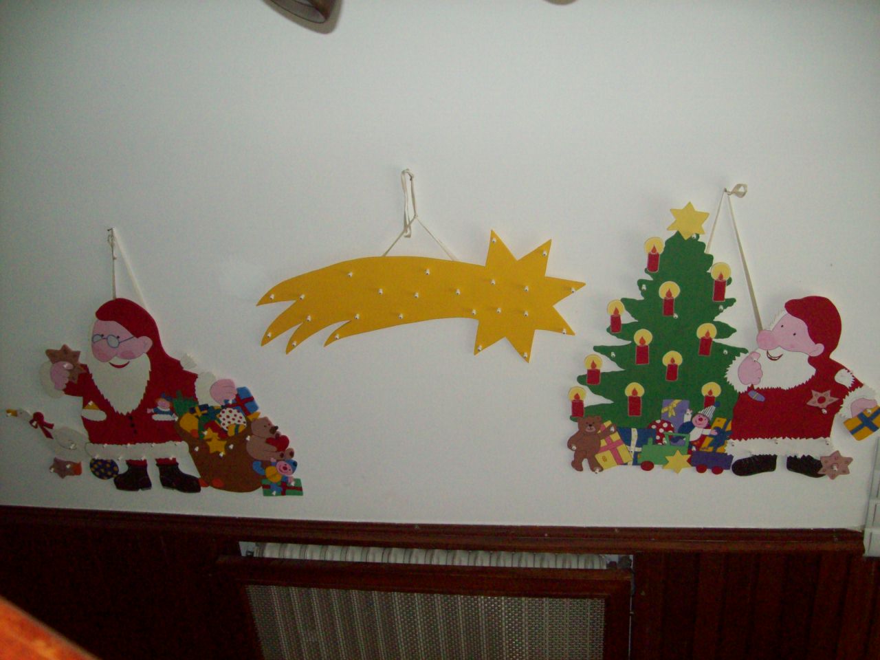 An den beiden Nikoläusen sind auch Nägel mit Perlen befestigt, genau wie an dem Stern.