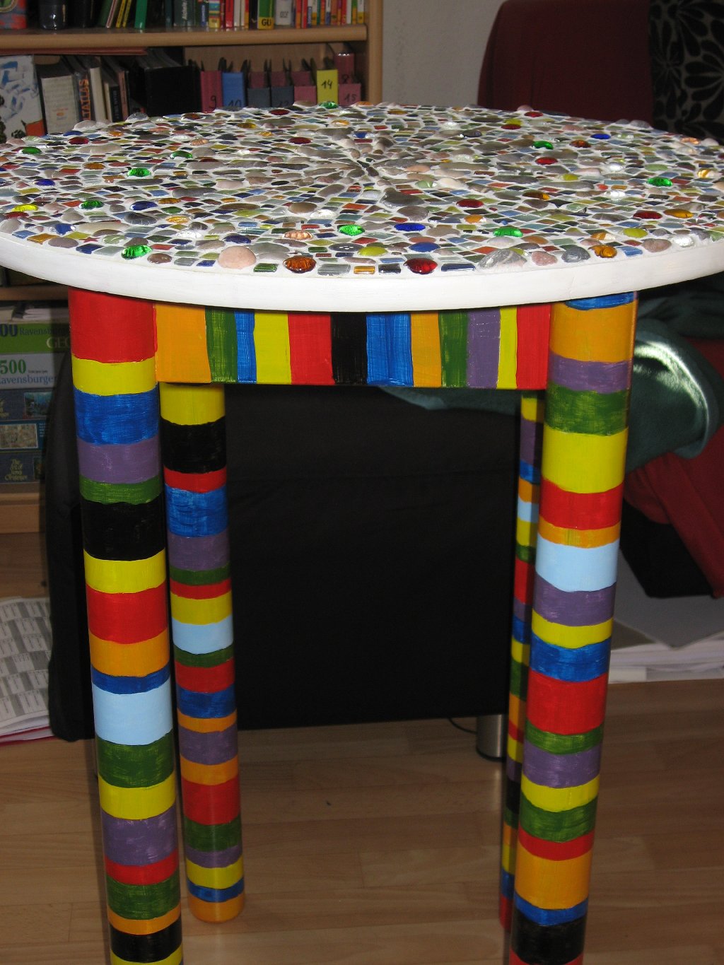 ein mosaik in der größe hab ich schon lange mal machen wollen. hab den tisch gebraucht gekauft und eigentlich sollte er auf den balkon, aber dafür ist er mir jetzt fast zu schade.