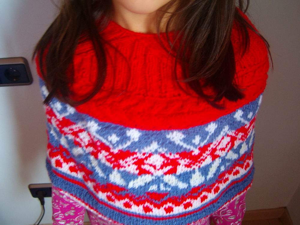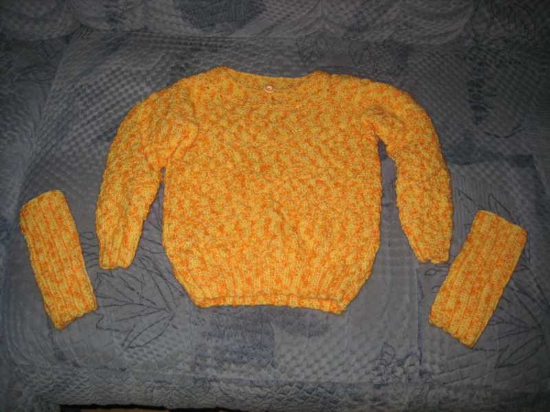 Hier mein Pulli,da ich keine Anleitung fand,habe ich diesen gestern fertig gestrickt,Stulpen dazu