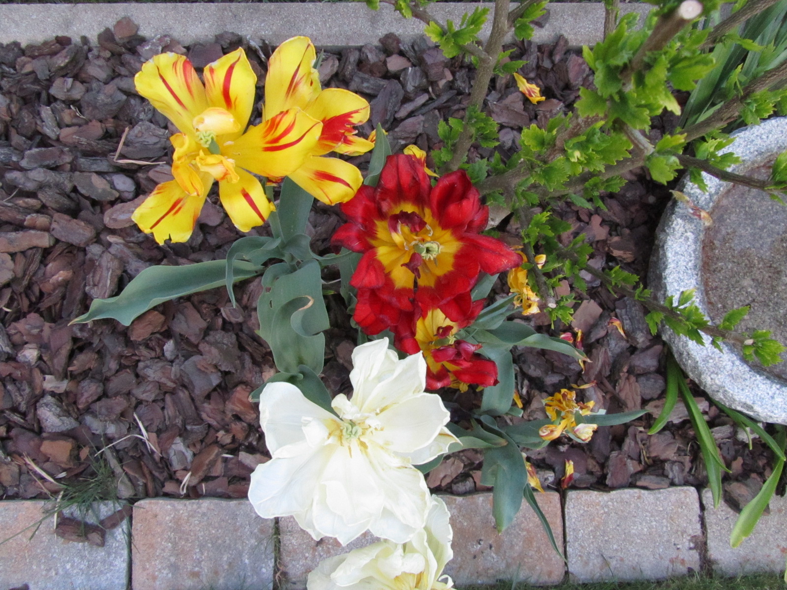 Erst habe ich gedacht, ich hätte augeblühte Tulpen in falscher Erinnerung, aber dieses Frühjahr haben wir noch viele Tulpen mehr, die wir im Herbst gesetzt haben. Das sind alles "normale".