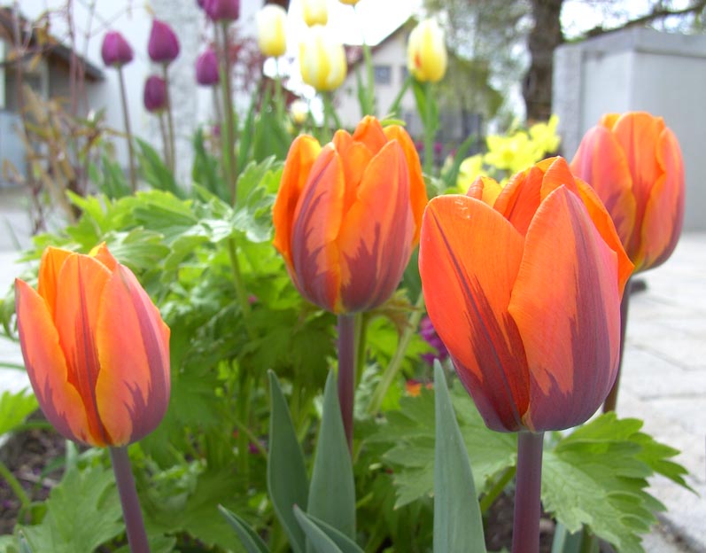 Erst habe ich gedacht, ich hätte augeblühte Tulpen in falscher Erinnerung, aber dieses Frühjahr haben wir noch viele Tulpen mehr, die wir im Herbst gesetzt haben. Das sind alles "normale".