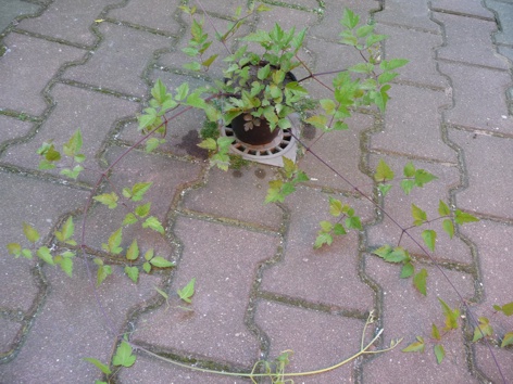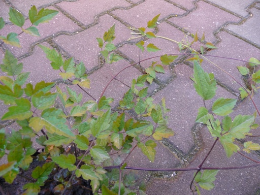Es muß ne Rankpflanze sein. Die Ranken sind schon 1m lang. Wuchs bei mir auf dem Beet.