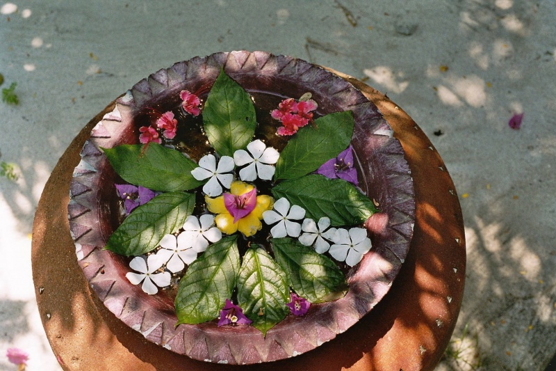 ich habe selbst schon so unseren provisorischen zugangsweg dekoriert, empfehle aber auf jeden fall - leider - es so aufzustellen, dass niemand von der straße her "im vorbeigehen" das gefäß umkippen kann o.ä. - naja, wir leben halt hier in einem land, in dem manche menschen schönes nicht sehen können (oder wollen) und natürlich hat es bei uns keinerlei "geistigen" bezug und daher gibt es keinerlei hemmschwelle. mit so dekorierten gefäßen sollen die manigfaltigen götter und geister erfreut werden ........... deshalb auch immer frische blüten und niemals verwelktes drinnen lassen.......