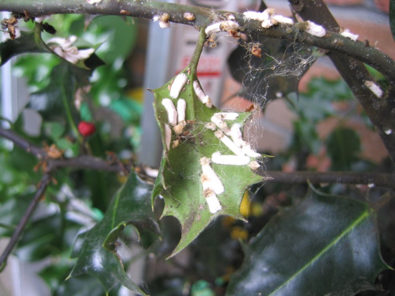 1. Mein Ilex hat weisse längliche Erhebungen auf der Unterseite der Blätter. Es sieht aus wie weisse Würste die ein kleines Fiech hinterlassen hat.