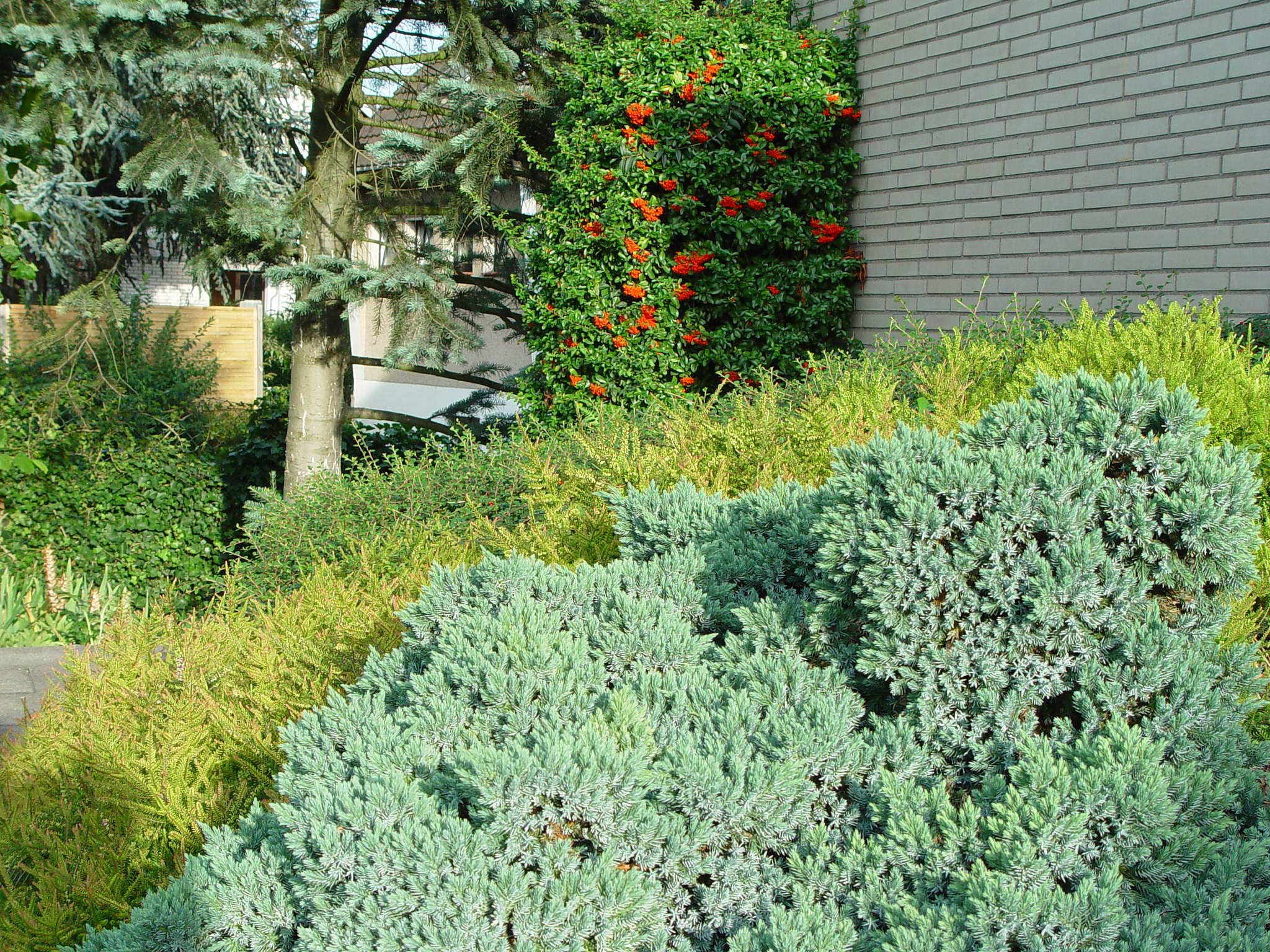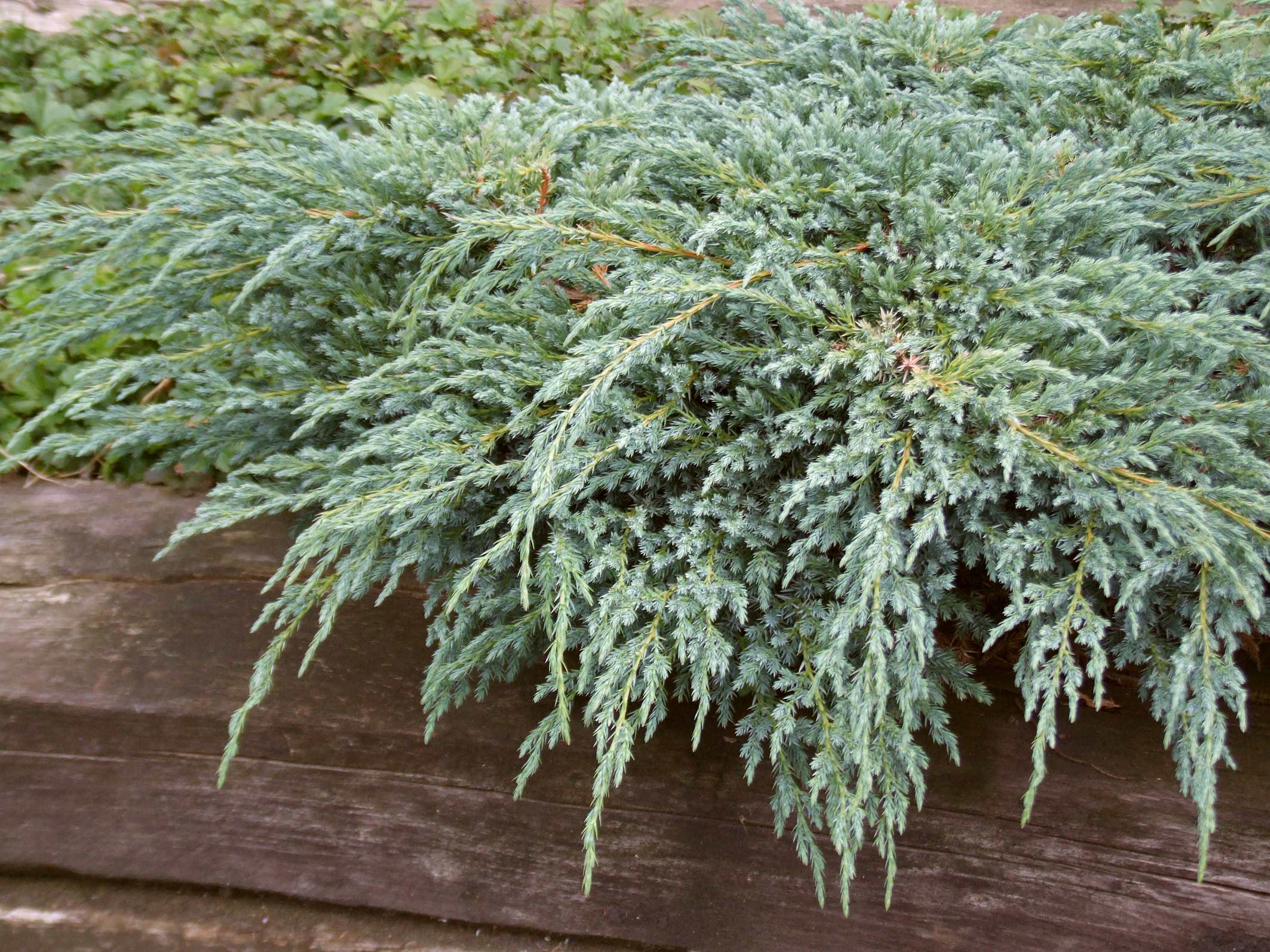 Im Wortsinn gründliche Arbeit leisten Bodendecker, die je nach Wuchs den Boden wie flache Teppiche bedecken oder eine dichte Fläche mit unterschiedlichen Höhen bilden. Sie unterdrücken zudem Unkräuter, die sich auf kahlen Bodenstellen rasch ansiedeln. Diesen Wildkräutern fehlt das Licht für ihre Entwicklung, wenn die Erde durch dichtwachsende Gehölze oder Stauden beschattet wird. Wacholder (Juniperus) zum Beispiel sind vielgestaltige, immergrüne Nadelbäume, von denen einige flachwachsende Formen den Boden gut bedecken können. Manche wachsen schlank aufrecht, andere breitausladend und einige schmiegen sich wie Teppiche an den Boden. Dazu kommt ein großes Farbenspektrum der Nadeln, das die verschiedensten Grün-, Blau- und Gelbtöne umfasst und dem Garten selbst im Winter noch Farbe verleiht.