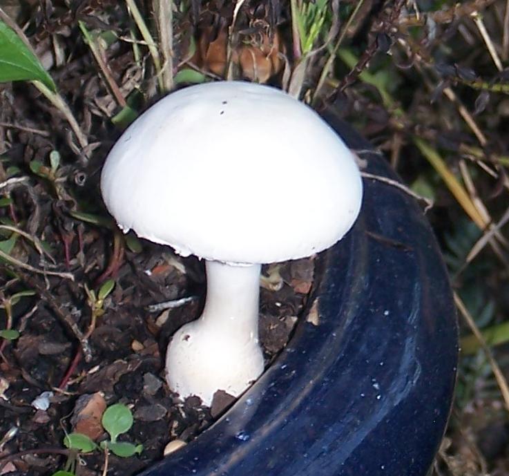 Herbstzeit ist natürlich auch Pilzzeit. Dieser hübsche Kerl hier ist in einem unserer Blumenkübel aufgetaucht. Hab' allerdings keine Ahnung, was das ist.