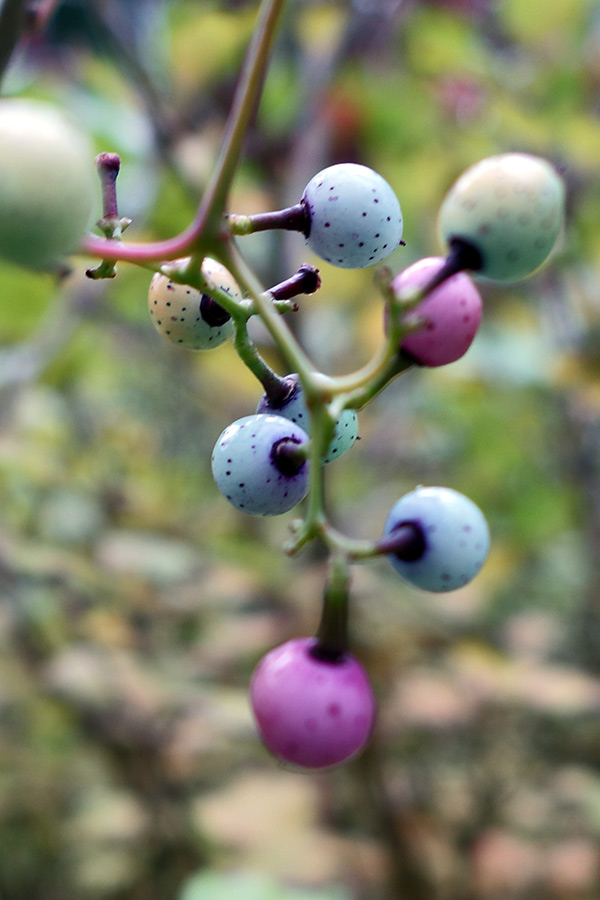 Ampelopsis brevipedunculata, eine Scheinrebe, im englischen auch "porcelain berry" genannt.