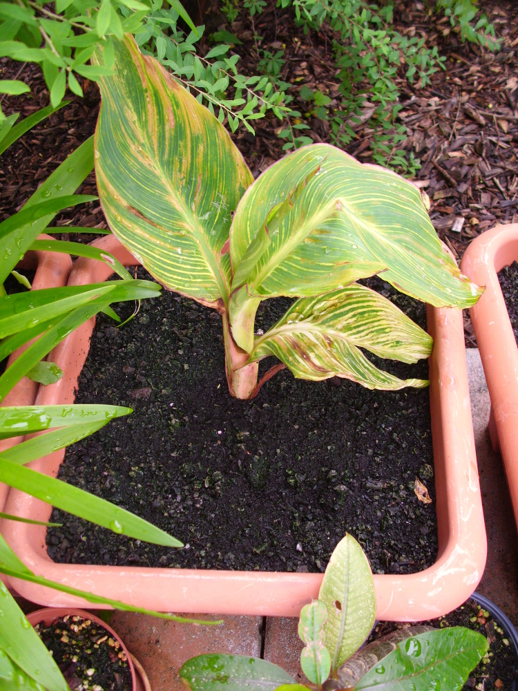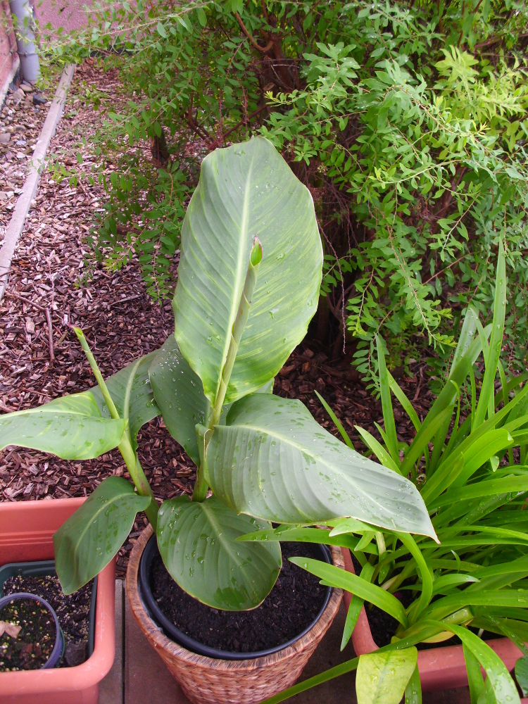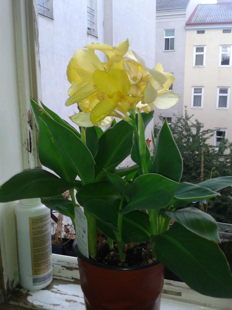 Die mal aus Samen gezogene und wieder überwinterte, Rot blühende Canna wächst auch weiterhin ordentlich.