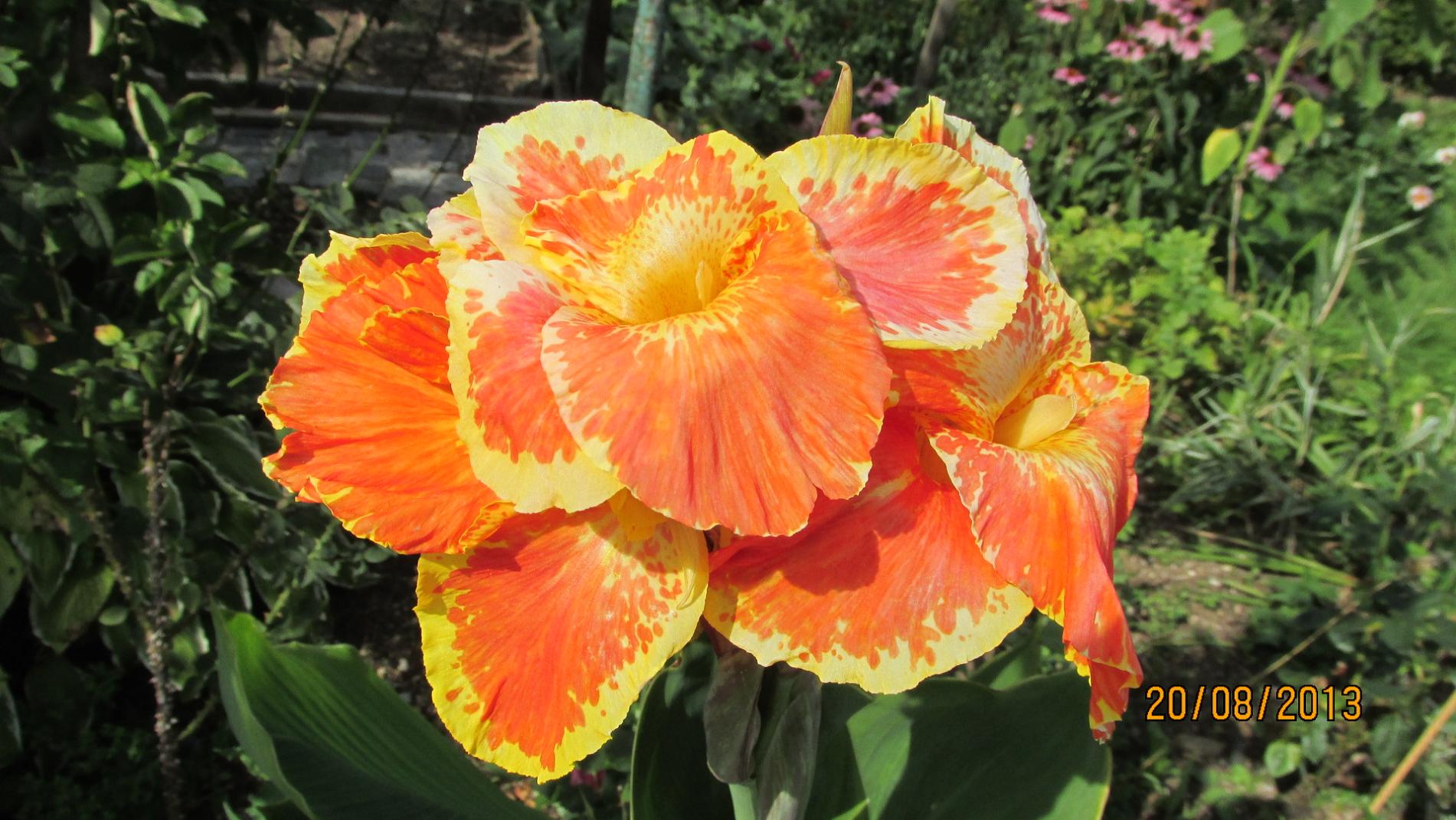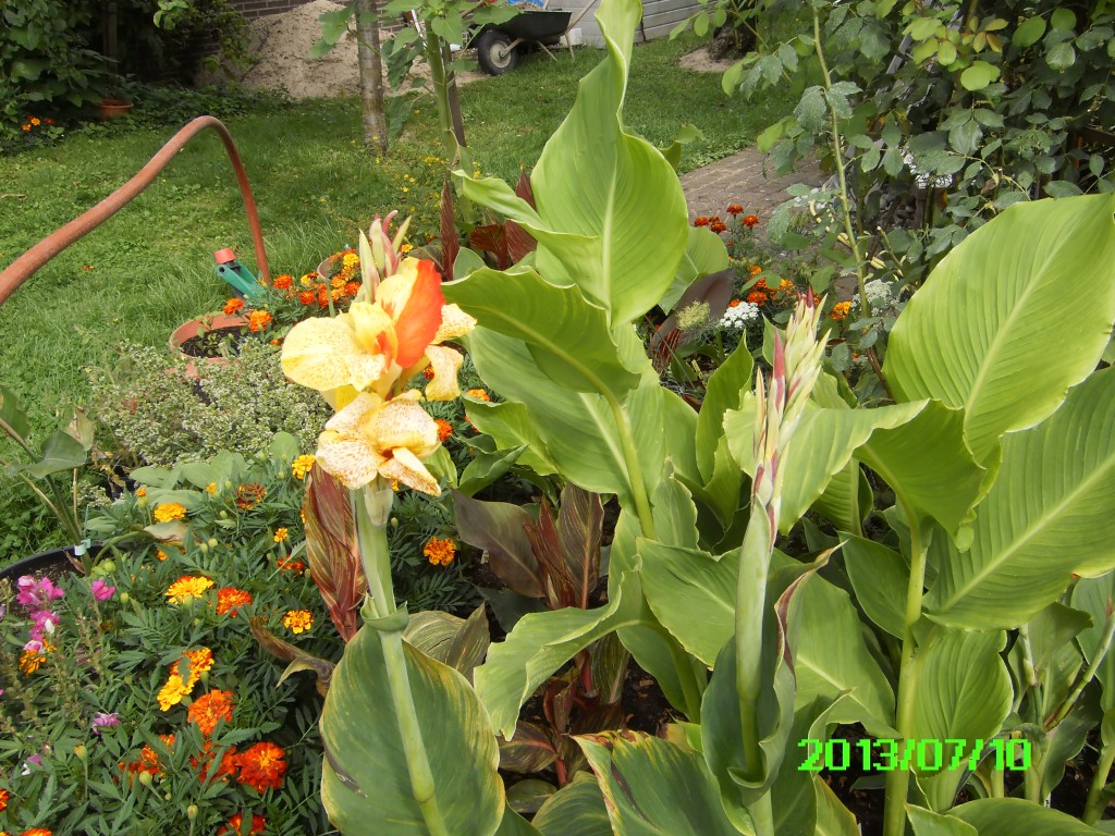 Alle Canna,Musas und Engelstrompeten hinken arg hinterher ,geschätzt gut 1 Monat.
