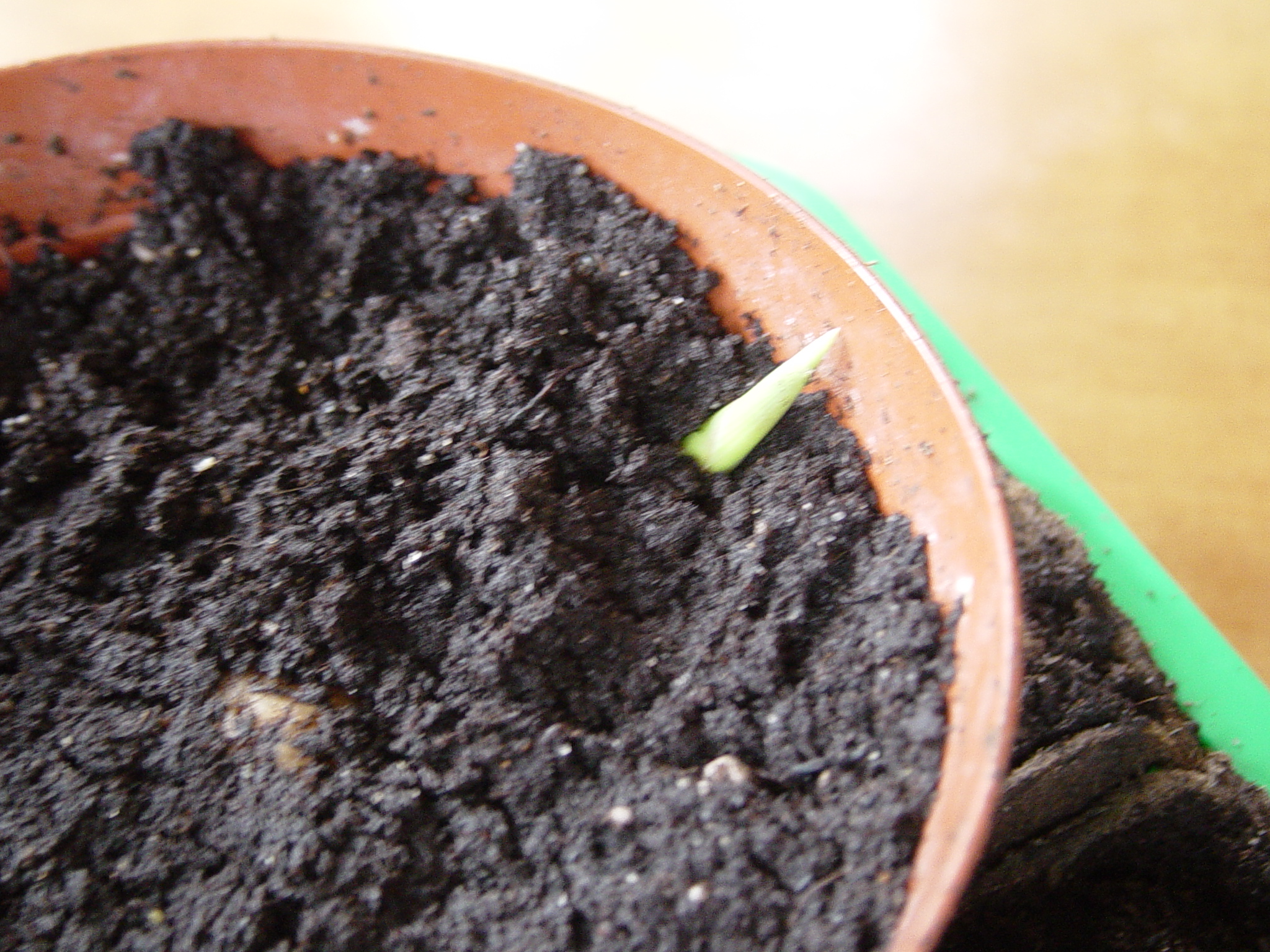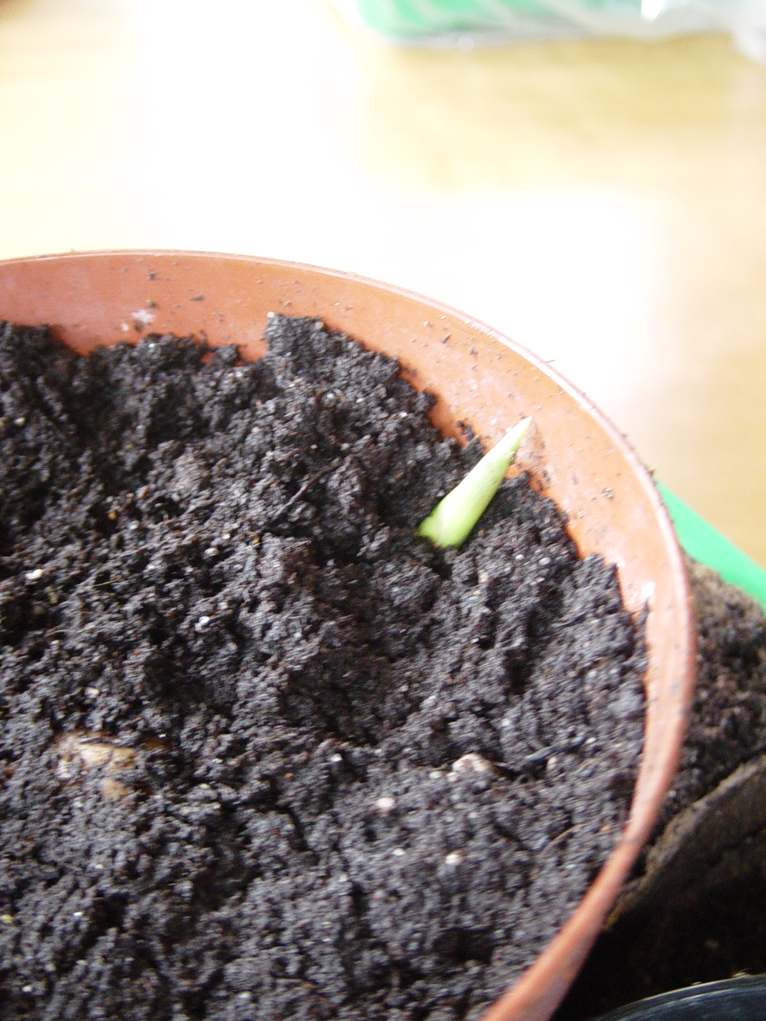 Fragt mich bitte nicht, warum ich Ingwerknollen gekauft habe (die waren so schön klein im Netto ) und warum ich die dann auch noch auf die Erde gelegt habe (warum eigentlich nicht ). Auf alle Fälle ist da Bewegung drin