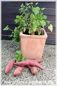 Wer seinen Speiseplan mit exotischen Knollen bereichern und seiner Familie statt Kartoffeln etwas Aromatischeres servieren möchte, sollte es mit Süßkartoffeln (Ipomoea batatas) versuchen. Die rotschaligen, unregelmäßig geformten Knollen bilden während eines Sommers reichlich Tochterknollen, die Sie im Herbst ernten können. Zum Nutzwert kommt der Zierwert der sommergrünen Pflanzen hinzu, de lange, rankende, mit herzförmigen Blättern dekorierte Triebe entwickeln. An Pyramiden/ Säulen oder als Bodendecker erzogen, werden sie zu frischgrünen Skulpturen, die die Sommerterrasse mit ihren rosafarbenen Blütentrichtern ebenso bereichern wie den Wintergarten.