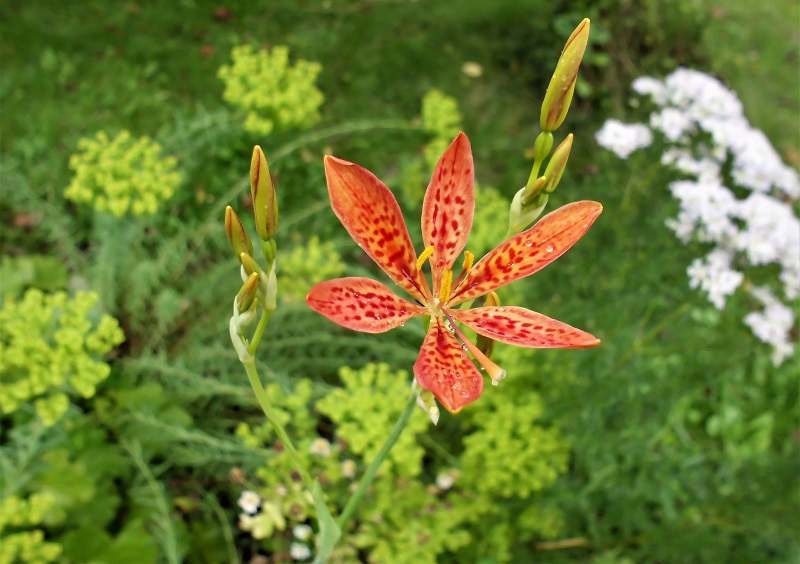 Bei mir blüht gerade diese Schönheit: die Leopardenblume, Iris domestica.