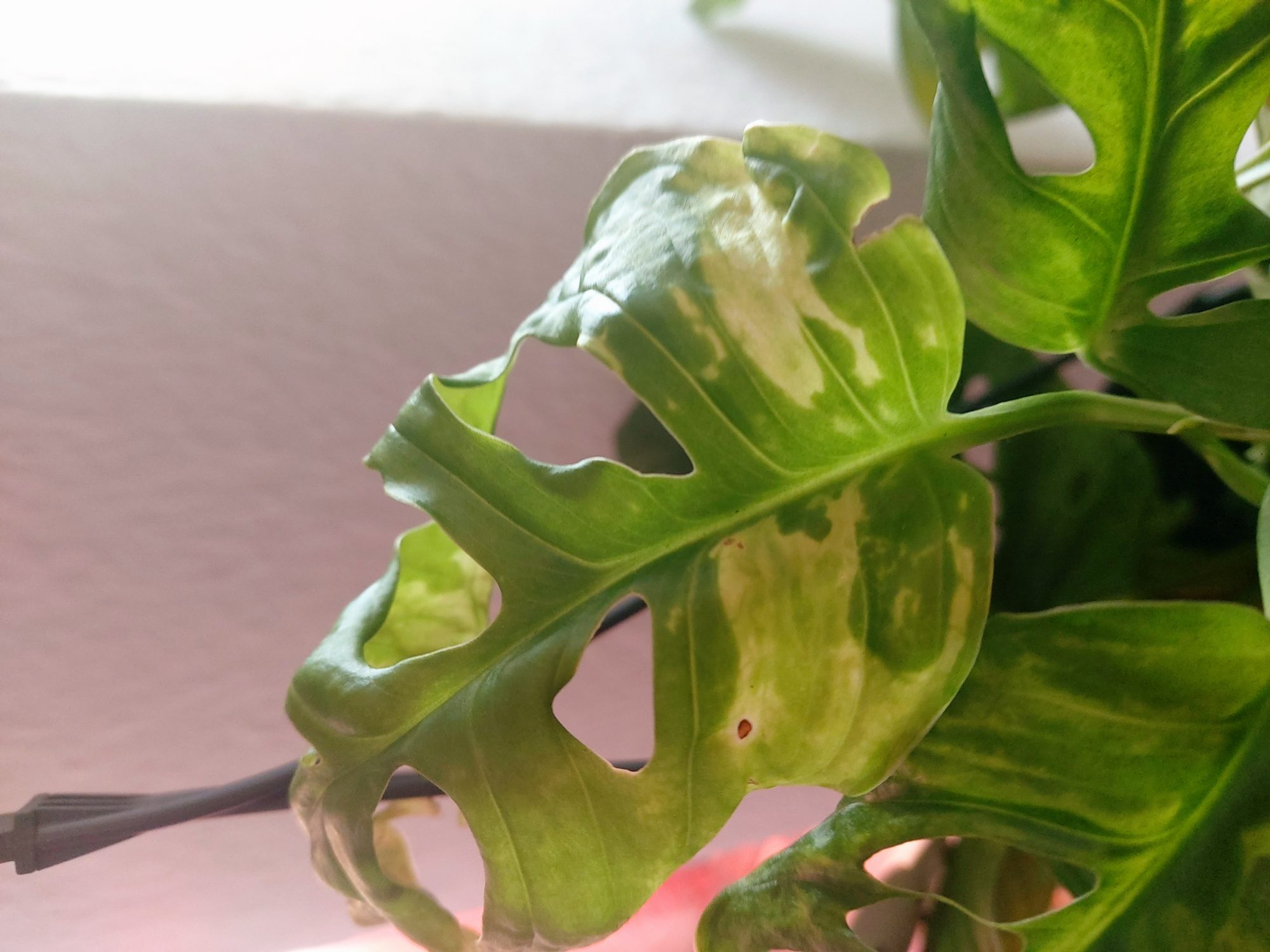 Monstera adansonii. Man bekommt fast das Gefühl, es gäbe gar keine gesunden Exemplare. Mit Sicherheit stark verbreitet ist bei dieser Art ein Mosaikvirus. Welches, ob nur eines oder auch andere Viren oder Bakterien, das habe ich bisher nicht rausfinden können, denn die gefundenen Information dazu sind vornehmlich laienhaft und entsprechend diffus. Bei mir bleibt jeweils der Eindruck: Möchte man sich mit hoher Wahrscheinlichkeit ein sich grundsätzlich auf andere Pflanzen übertragbares Virus ins Haus holen, legt man sich eine