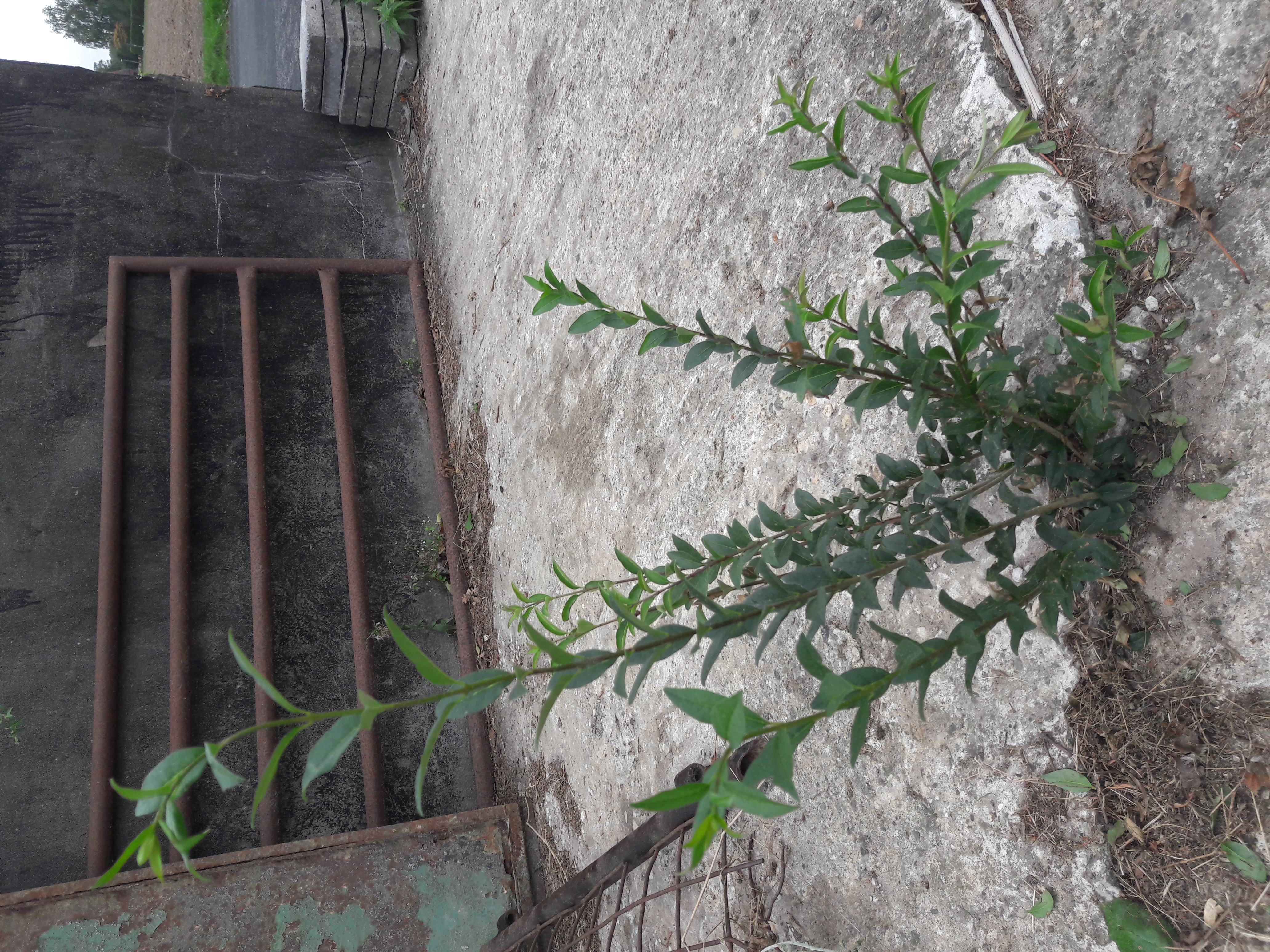 Die Pflanze ist wild zwischen zwei Betonplatten gewachsen.
