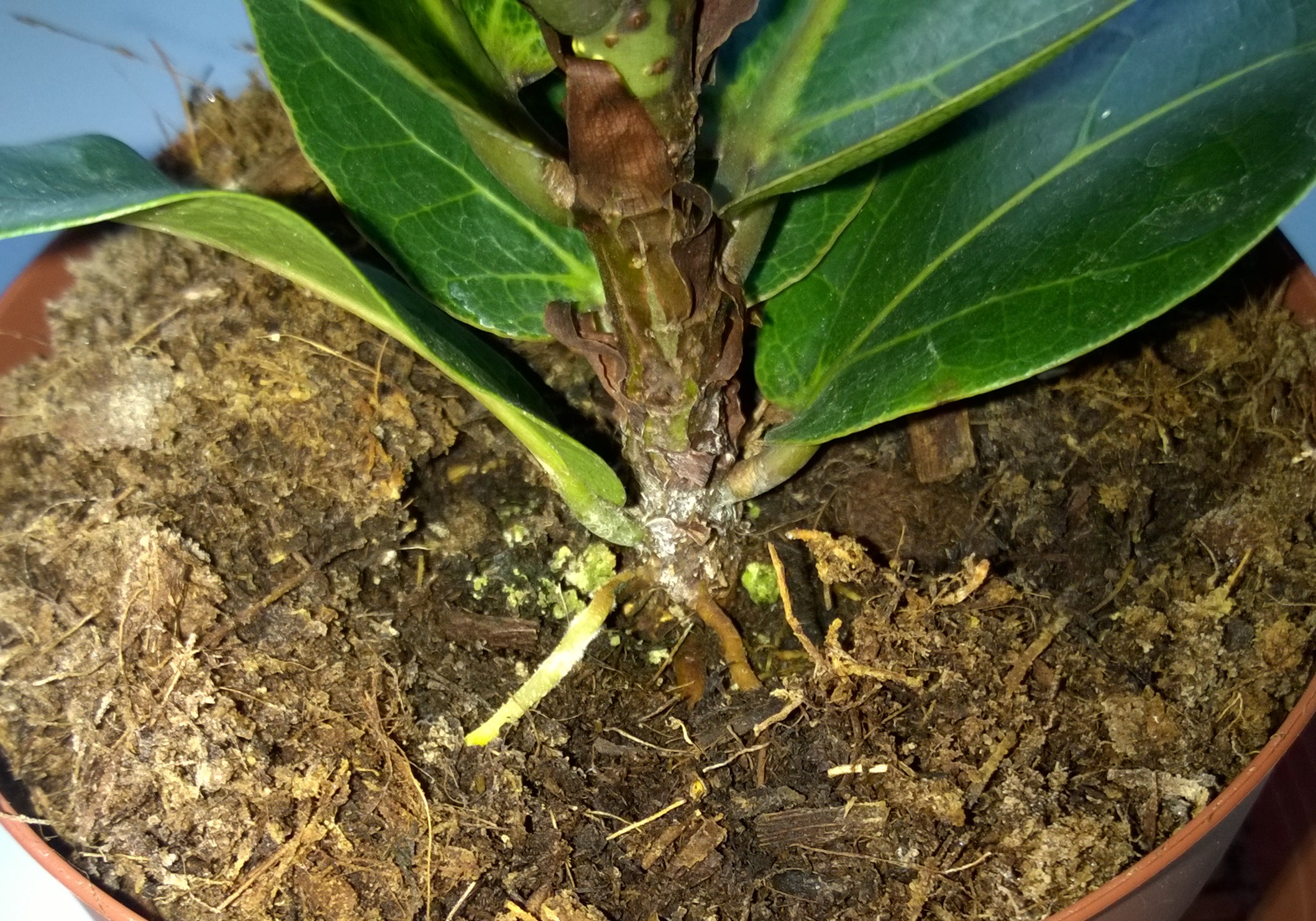 ich habe vor ein paar Monaten eine Ficus Lyrata geholt, die seit dem auf dem Balkon stand. Nun habe ich sie reingeholt und mir ist aufgefallen, das unten am Stamm was grünes ist. Kann es sein das es Moos ist? Ist das schlimm? Wollte eigentlich bis nächsten Frühjahr mit den topfen warten...