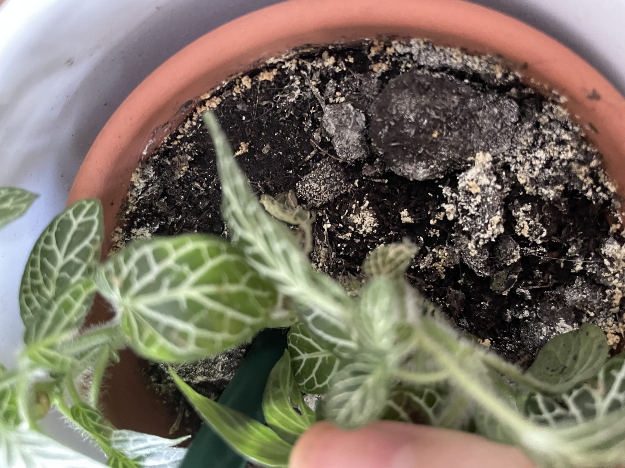 Die Erde der Fittonia sieht jetzt so aus- ist das Schimmel? Aus Sorge, zu wenig zu hießen, habe ich es evtl übertrieben?