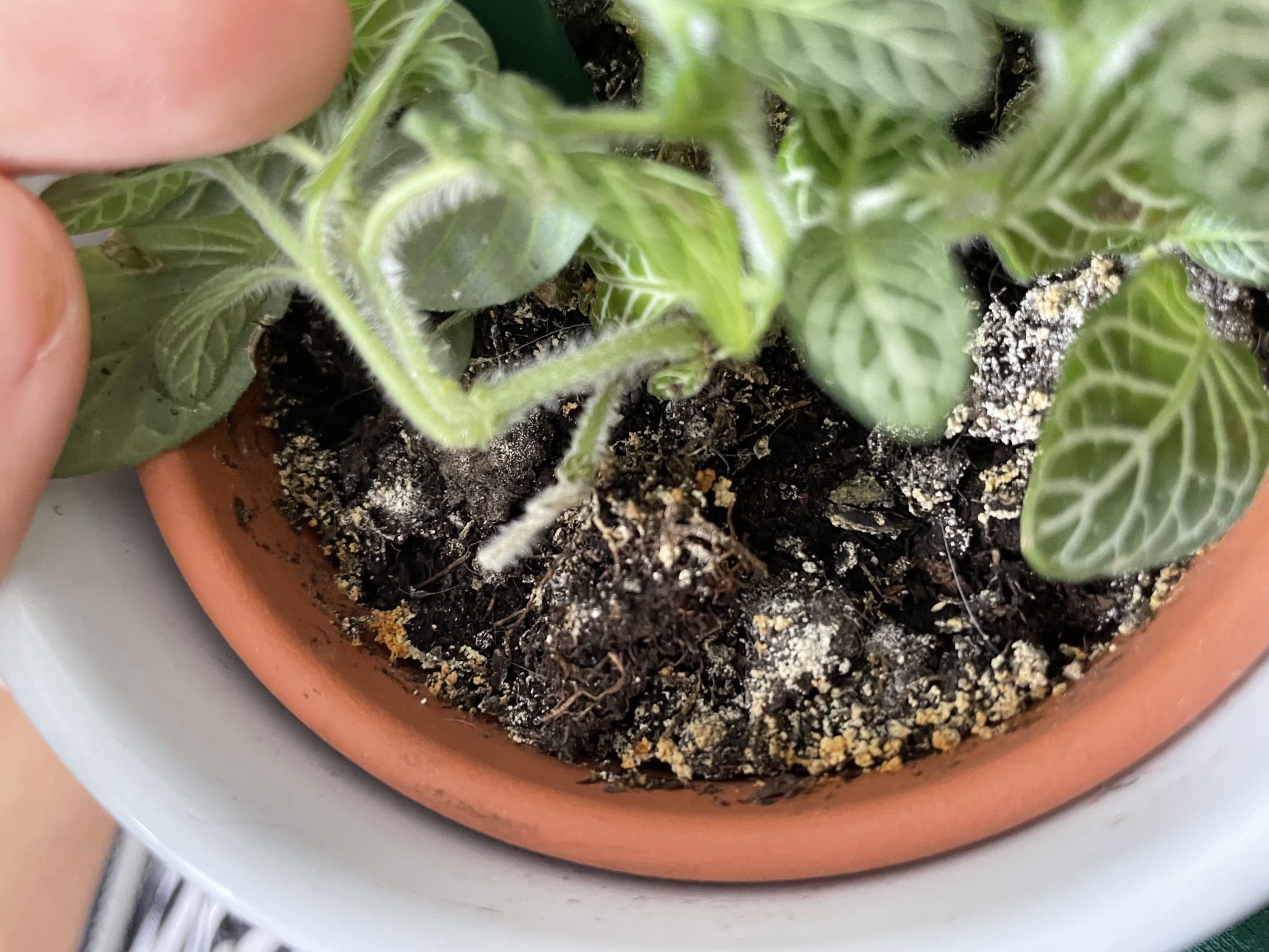 Die Erde der Fittonia sieht jetzt so aus- ist das Schimmel? Aus Sorge, zu wenig zu hießen, habe ich es evtl übertrieben?