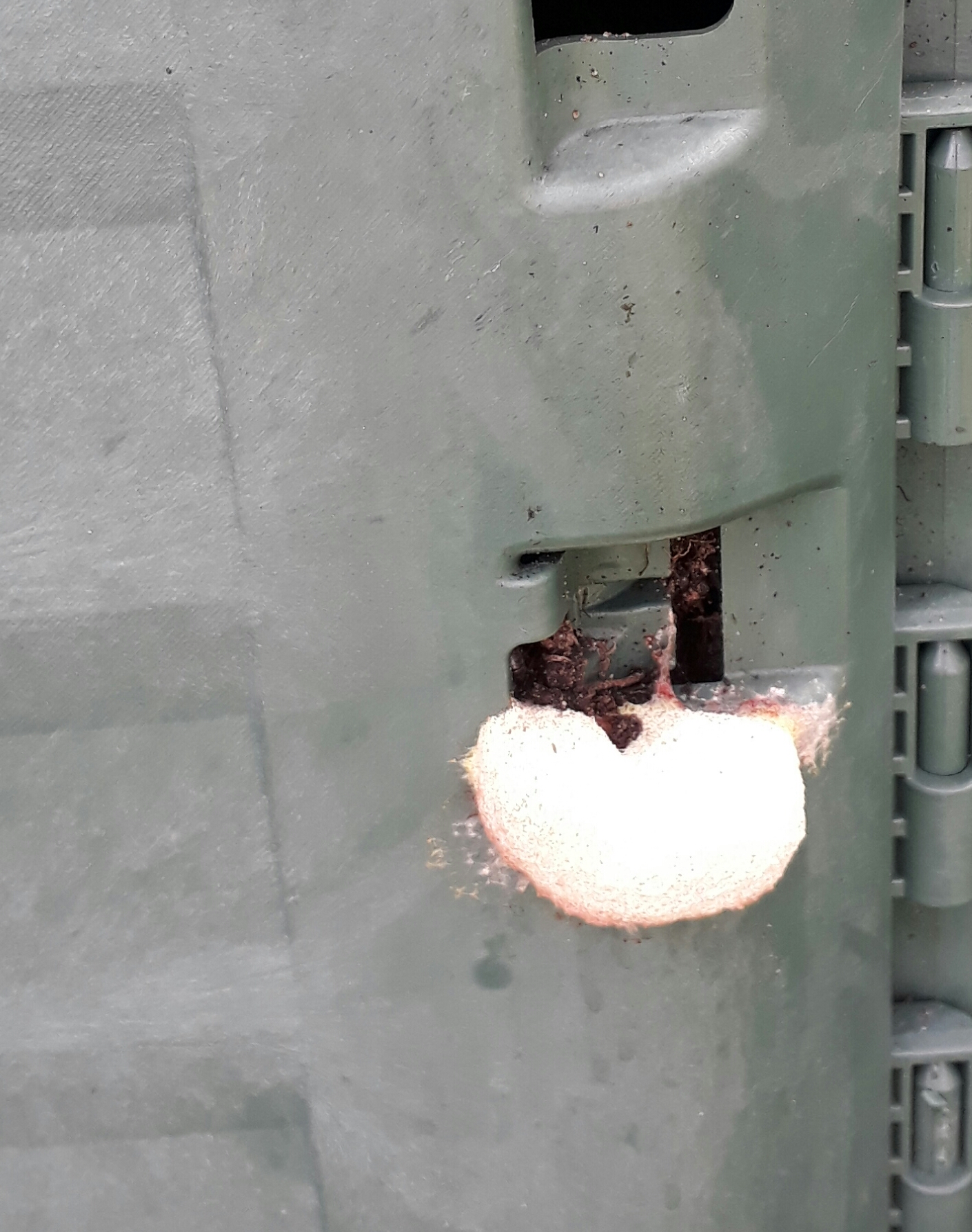 soeben habe ich außen an einem Thetmokomposter etwas entdeckt, was wie ein Hummelnest aussieht (gestern war da noch nichts).