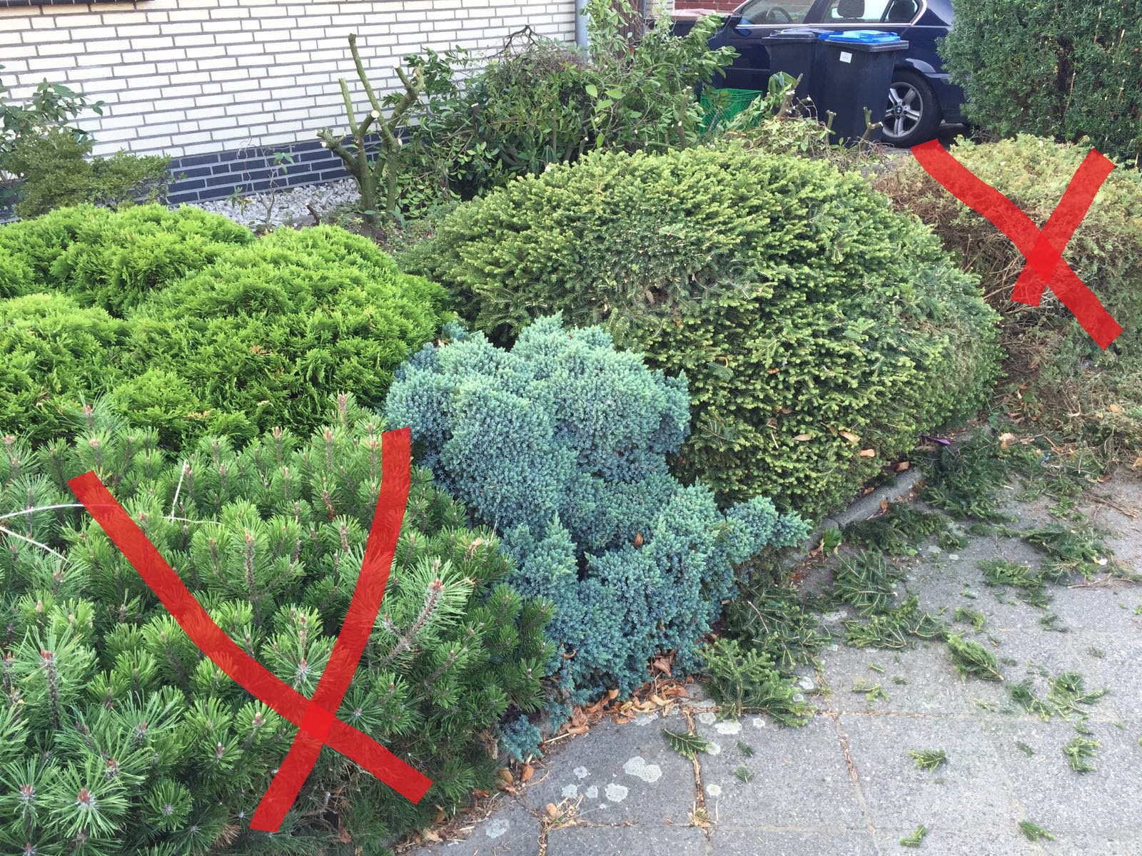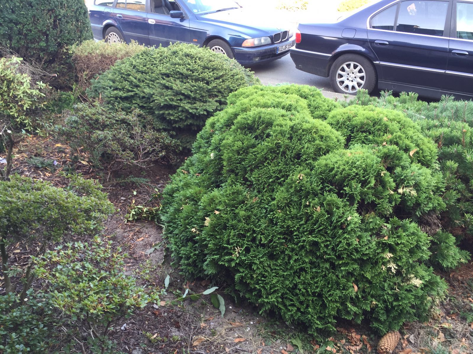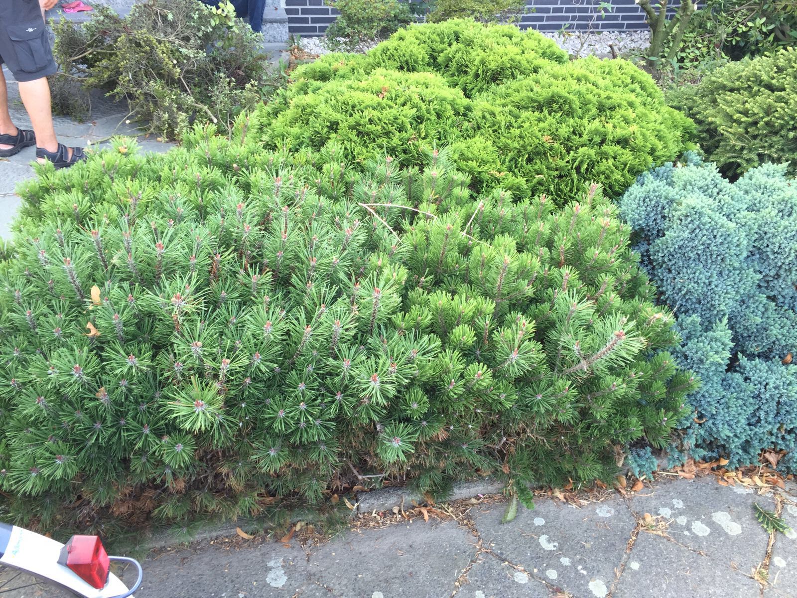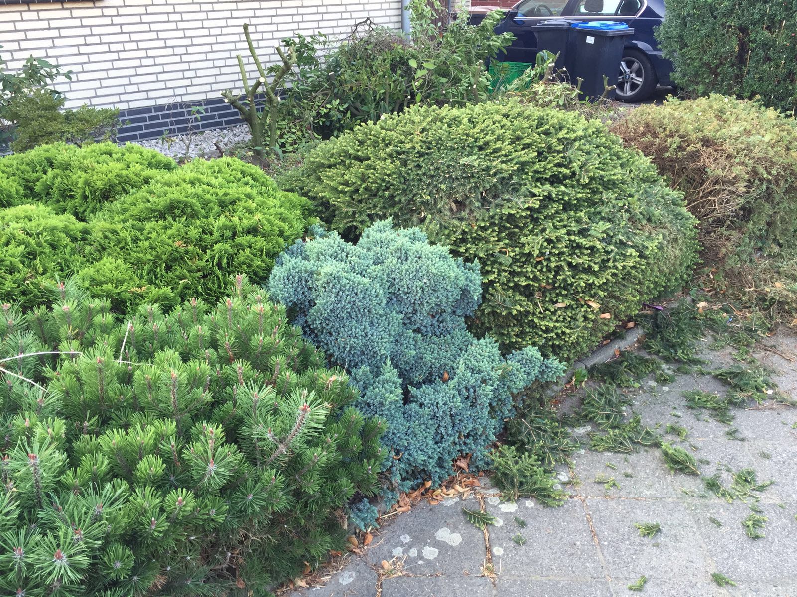 nach einem Hausumbau ist nun der Vorgarten an der Reihe. Was sind das für Pflanzen? Diese Büsche würde ich gerne am besten morgen so klein wie möglich schneiden. Einfach drauf los und unten am Trieb die Außenstehende Triebe entfernen? Unter der Oberfläche ist alles braun um mit Nadeln überschüttet. Meinetwegen dürfen die auch die nächsten 1-2 braun bleiben, Hauptsache sie kommen wieder in Form (rund?) und jede Pflanze steht für sich. Anbei drei Bilder. Vielen Dank für eure Hilfe.
