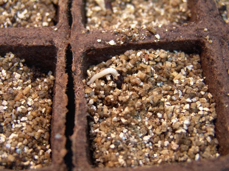 Anzuchtserde unten und die Samen sind in Vermiculit gebettet..