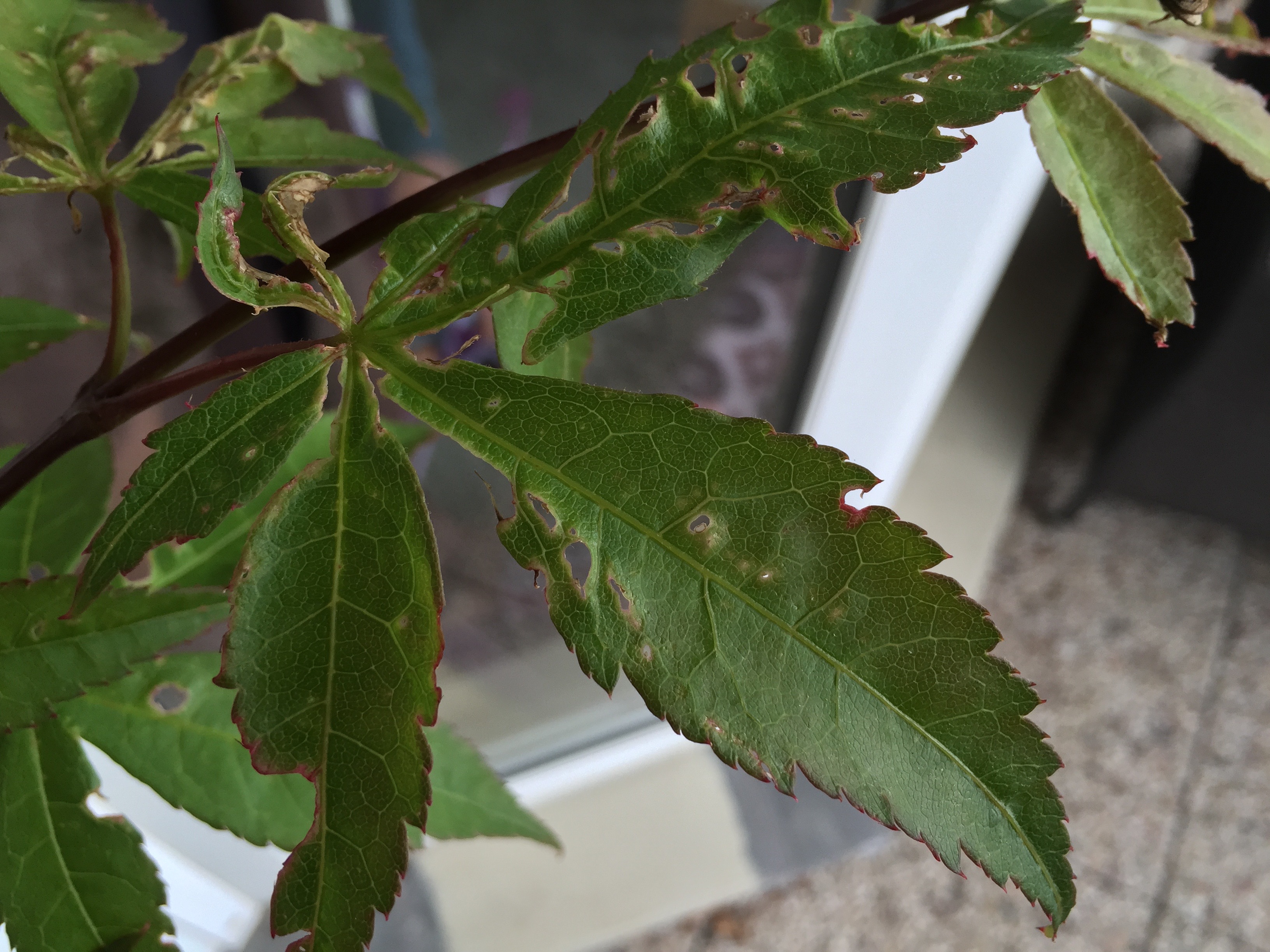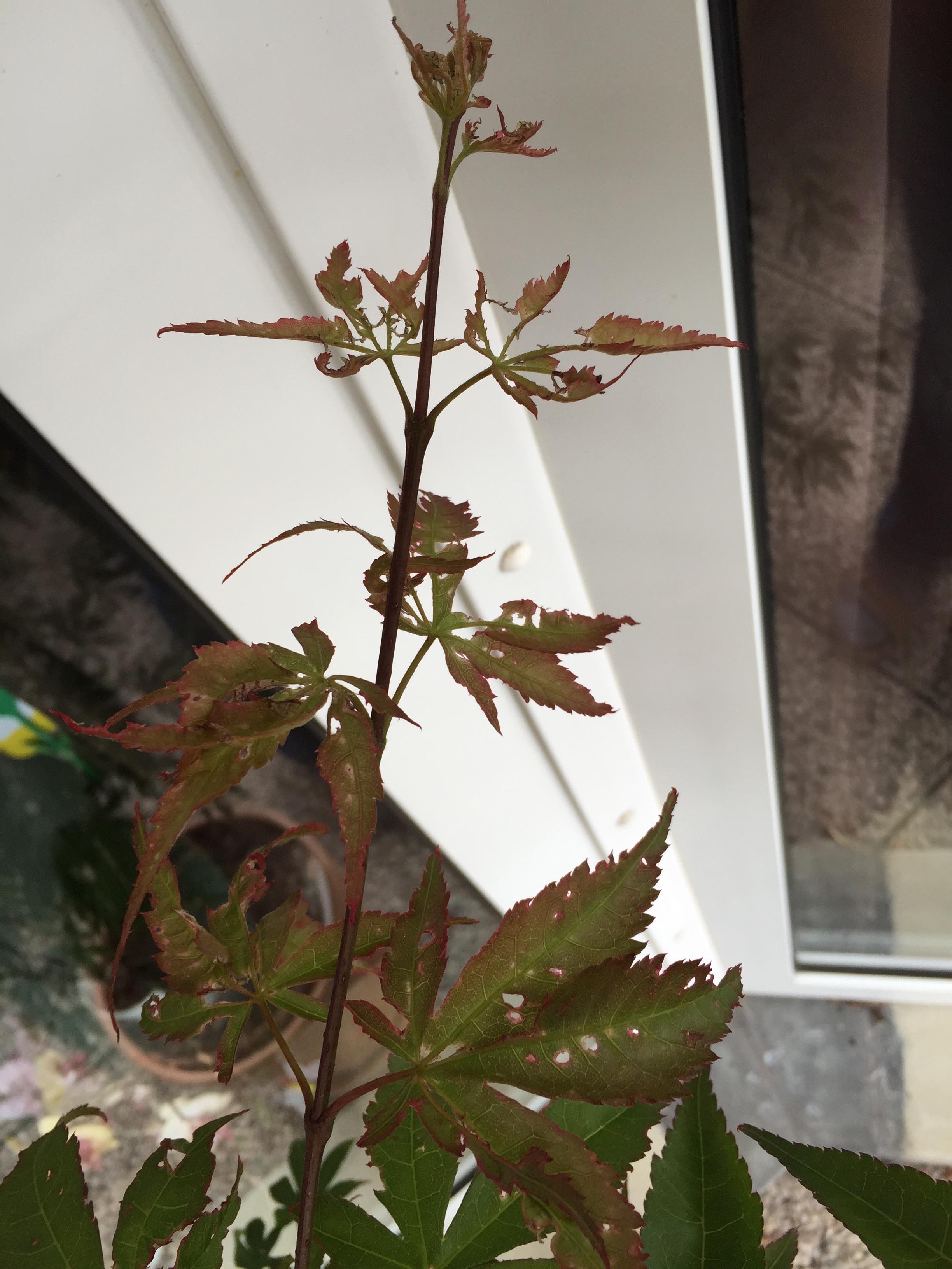 Ich habe seit einem 3/4 Jahr den o.g. Ahorn und bisher war er gut am wachsen. Aber seit wenigen Wochen sehen die Blätter so aus, wie auf den Bildern dargestellt. Dabei sind vor allem die jungen Triebe befallen.