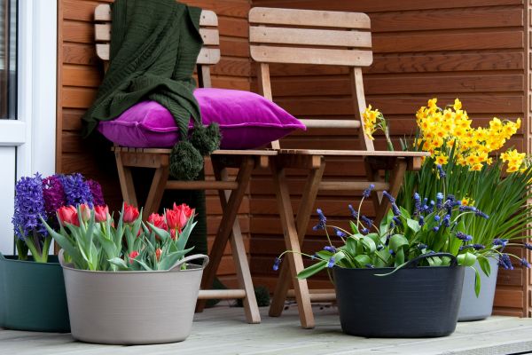 Schneeglöckchen, Winterlinge, Narzissen und Tulpen, Krokusse, Hyazinthen und Co. versammeln sich gekonnt in Töpfen, Blumenkübeln und Schalen, um dann im ersten Licht des herannahenden Frühlings, bei langsam steigenden Temperaturen, einen megastarken Auftritt hinzulegen. Das Beste, man muss fast nichts dafür tun, abgesehen davon, dass sie jetzt im Herbst in die Erde kommen. Nichts einfacher als das, bestens auch für Eilige und Pflanzmuffel geeignet, einfach die Blumenzwiebeln etwa doppelt so tief in die Erde stecken, wie sie hoch sind, mit Erde bedecken, fertig. Perfekt! Für Töpfe und Kästen eignen sich besonders gut die kleinwüchsigen Sorten, die jetzt im Handel angeboten werden. Ruhig dicht an dicht - allerdings ohne, dass sie sich berühren - in die Gefäße versenken. Da liegen die tollen Knollen dann und halten Winterschlaf, bevor sie im nächsten Frühling ihren spektakulären Auftritt haben. Wer weiß, vielleicht bleibt beim Anblick der üppig blühenden Kübel und Pötte gleich auch noch das ein oder andere passende ‚Deckelchen' bewundernd vorm Balkon stehen. Frühlingsflirt nicht ausgeschlossen, Blumenzwiebel sei Dank!
