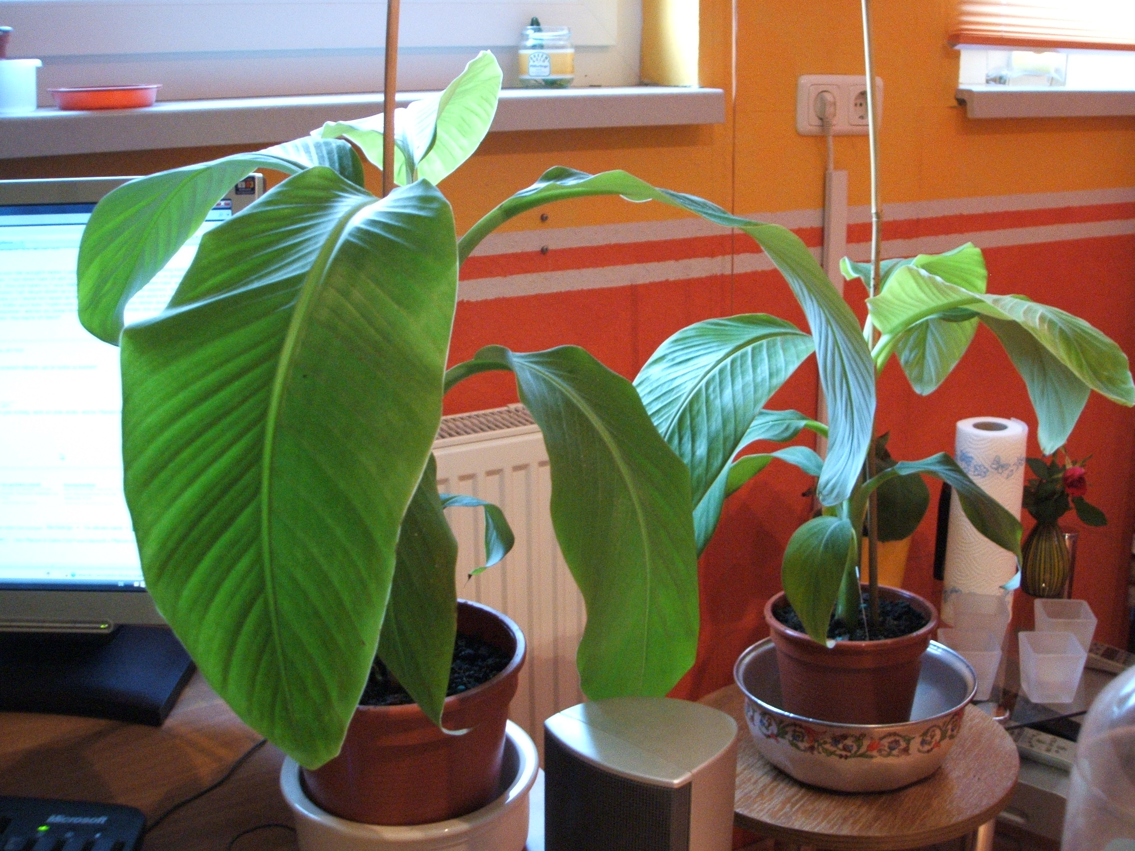 ich brauche mal eure Hilfe bezüglich meiner 5 jungen Bananenpflanzen. Die genaue Gattung kann ich leider nicht sagen. 2 von denen habe ich jetzt ca 3,5 Monate. Habe sie mit ungefähr 10 cm gekauft. Jetzt sind sie ca. 25cm und haben ca 7 neue Blätter bekommen. Als ich sie bekommen habe, waren sie in einem 7cm großen Topf. Aktuell stehen sie in einem 16cm Topf (jede in einem eigenen). Seitdem ich sie umgetopft habe (ca 1 Monat her) lassen die Pflanzen die Blätter hängen und wenn ich sie gieße, dann haben die Blätter auch keine Tropfen mehr an der Spitze. Die Pflanzen stehen direkt am Fenster in meinem Arbeitszimmer, welches ein Zimmer im Keller ist. Dort sind 2 Fenster drin und der Raum hat Zimmertemparatur. Was mache ich falsch?