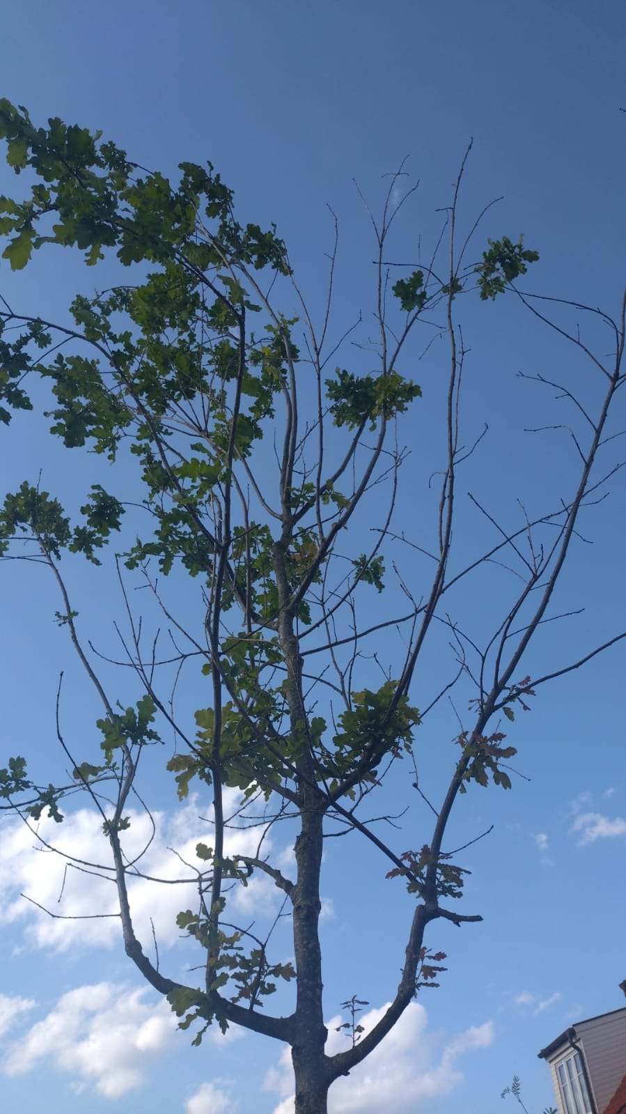unsere 2,5 jährige Eiche hat dieses Frühjahr an vielen Ästen keine Blätter. Sind die Äste endgültig verloren und sollte ich sie abschneiden (wenn ja, wann?) Oder kann da im kommenden Jahr noch was kommen?
