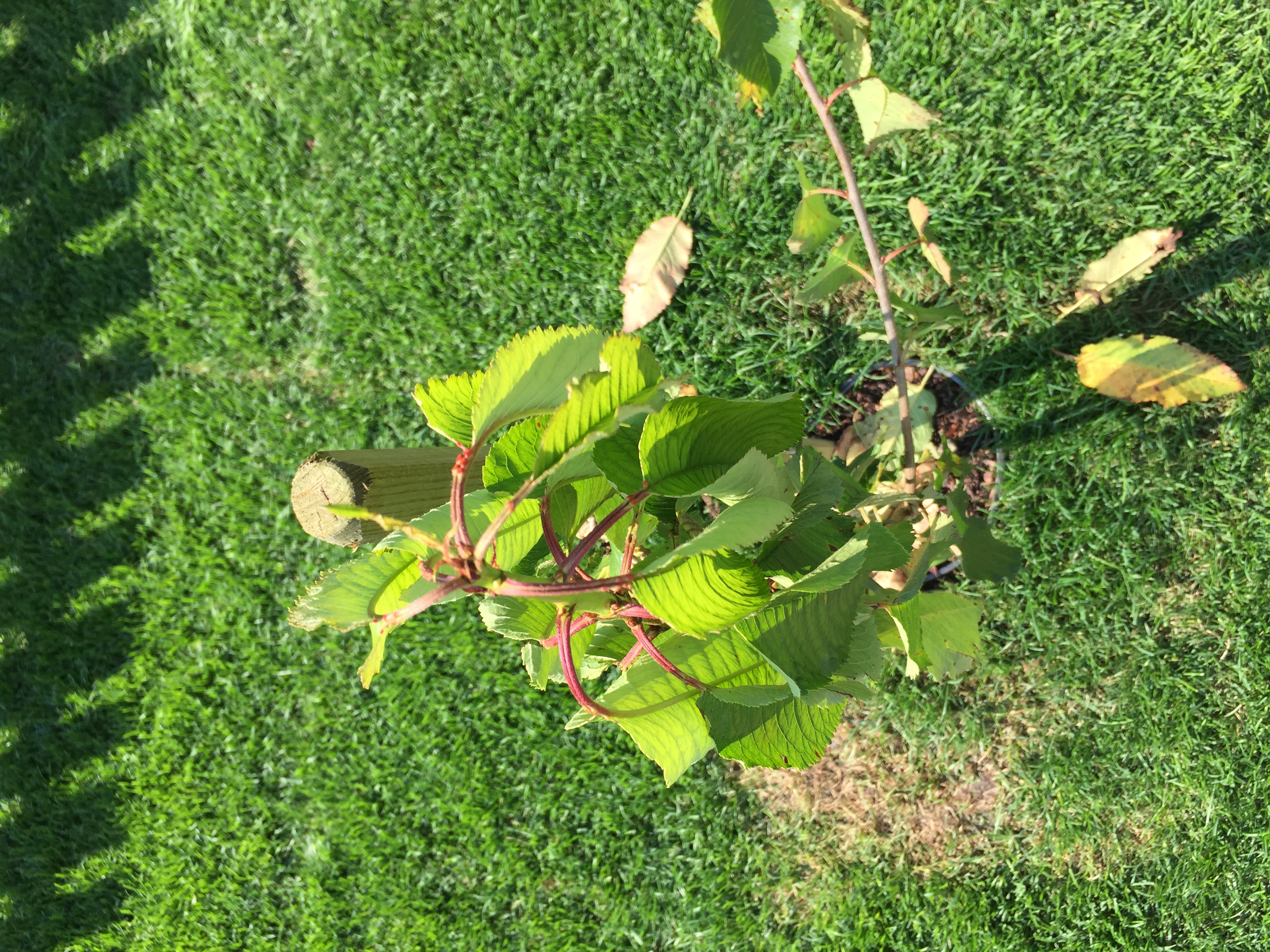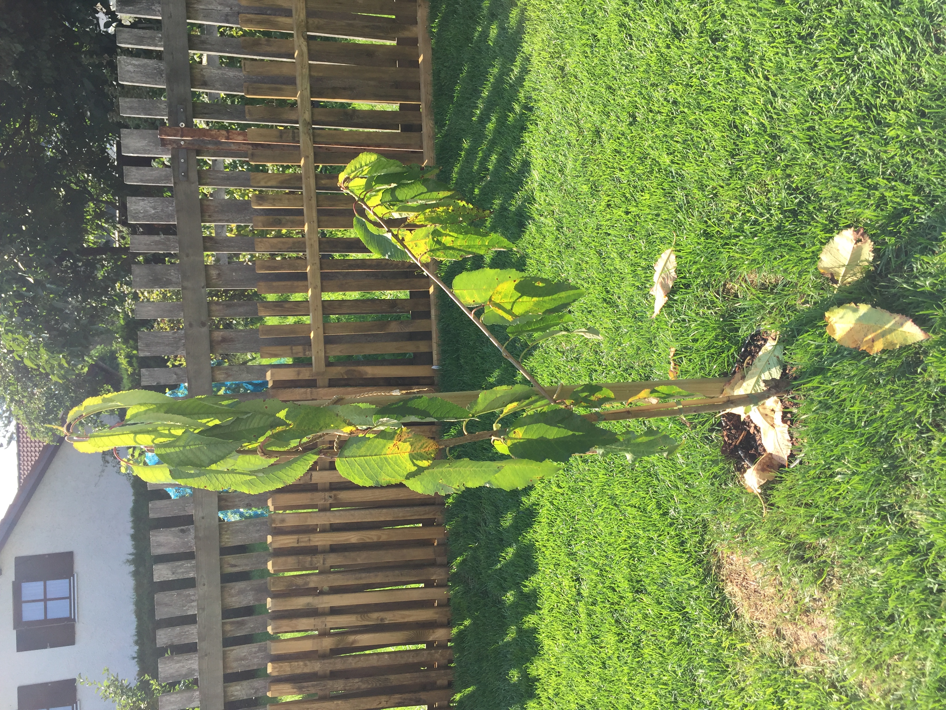 wir haben Anfang August unseren ersten Baum gepflanzt - Kirsche Swing Selbstfruchtend - online bestellt bei Ahrens und Sieberz.