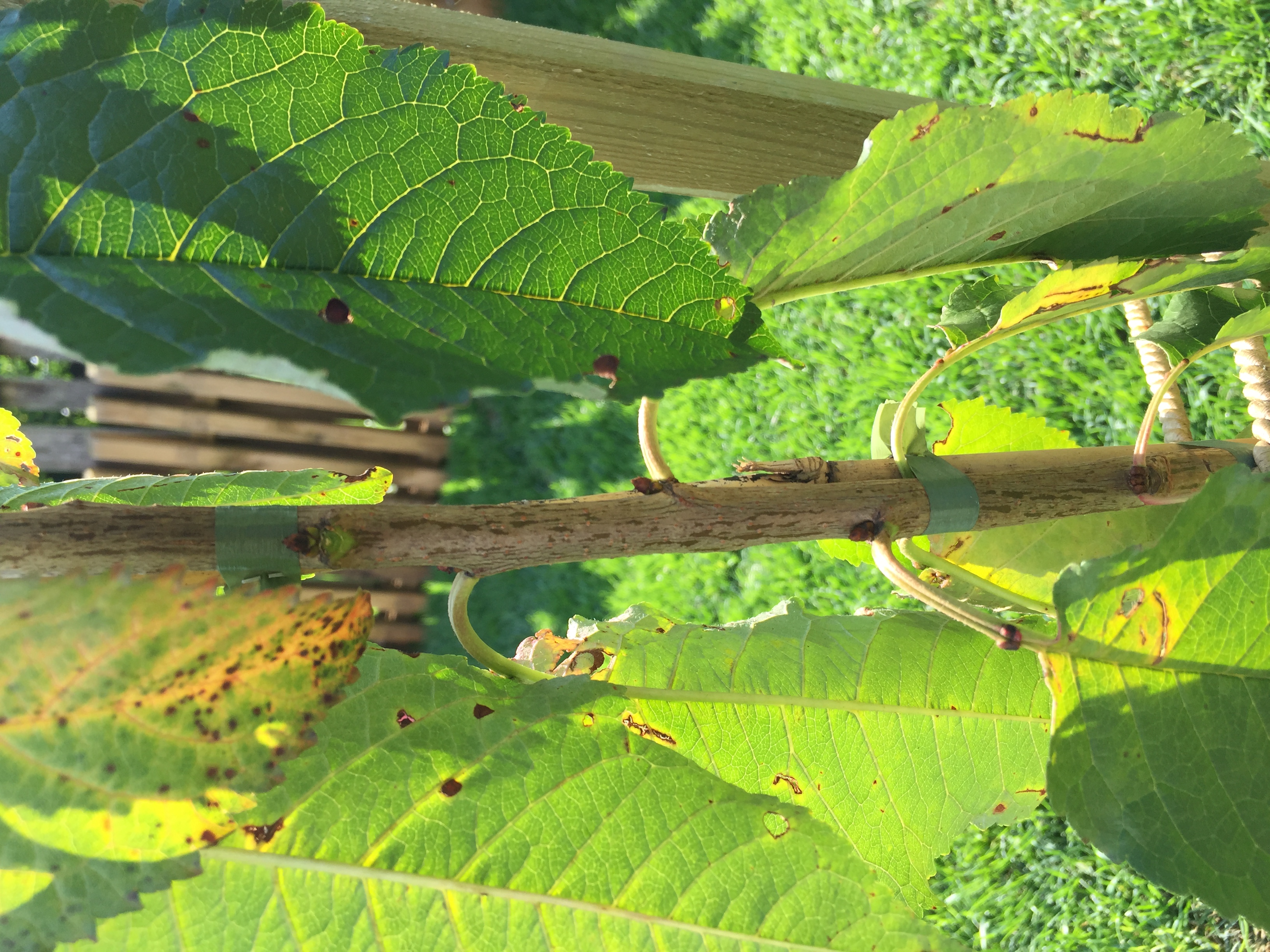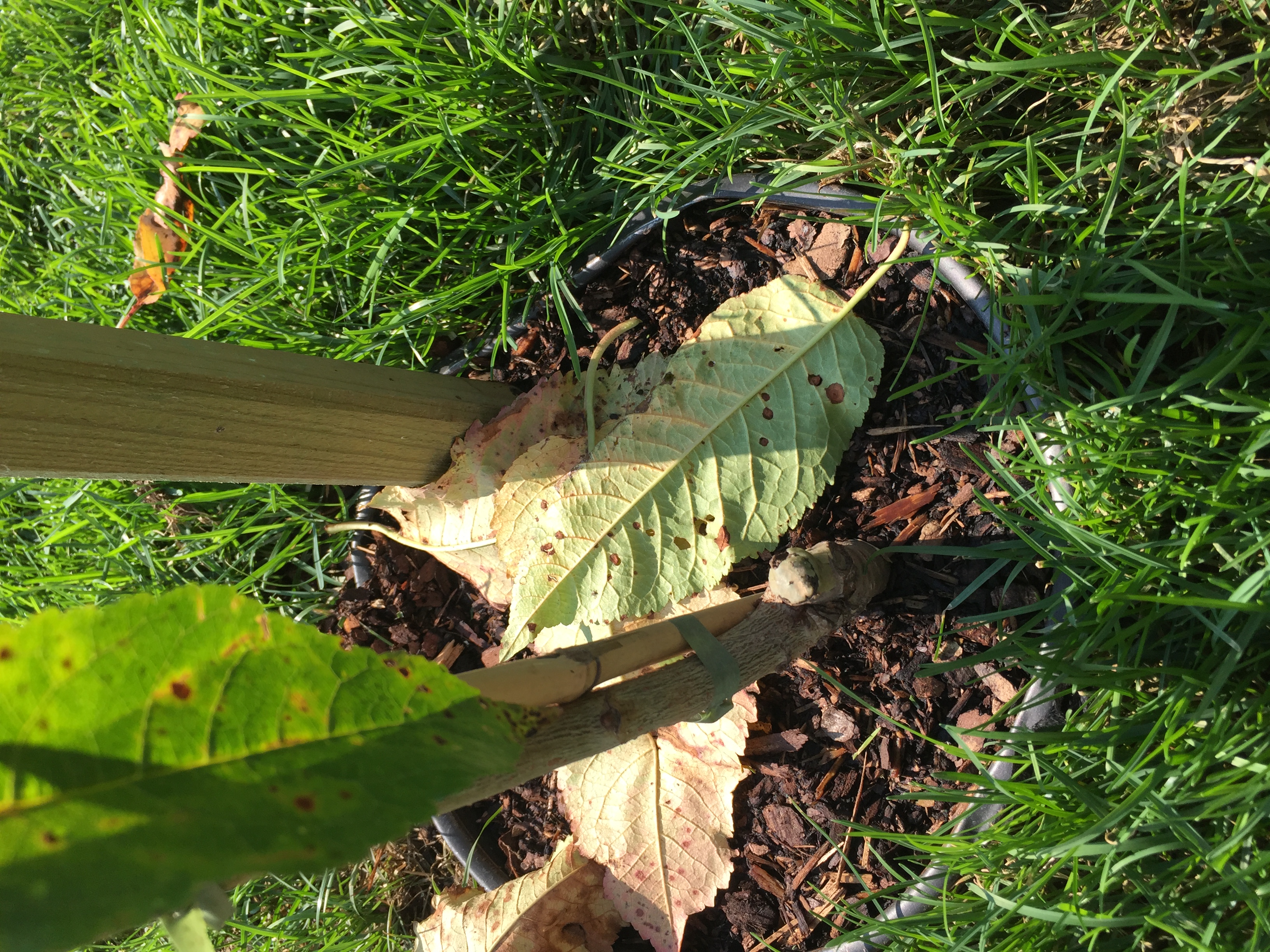 wir haben Anfang August unseren ersten Baum gepflanzt - Kirsche Swing Selbstfruchtend - online bestellt bei Ahrens und Sieberz.