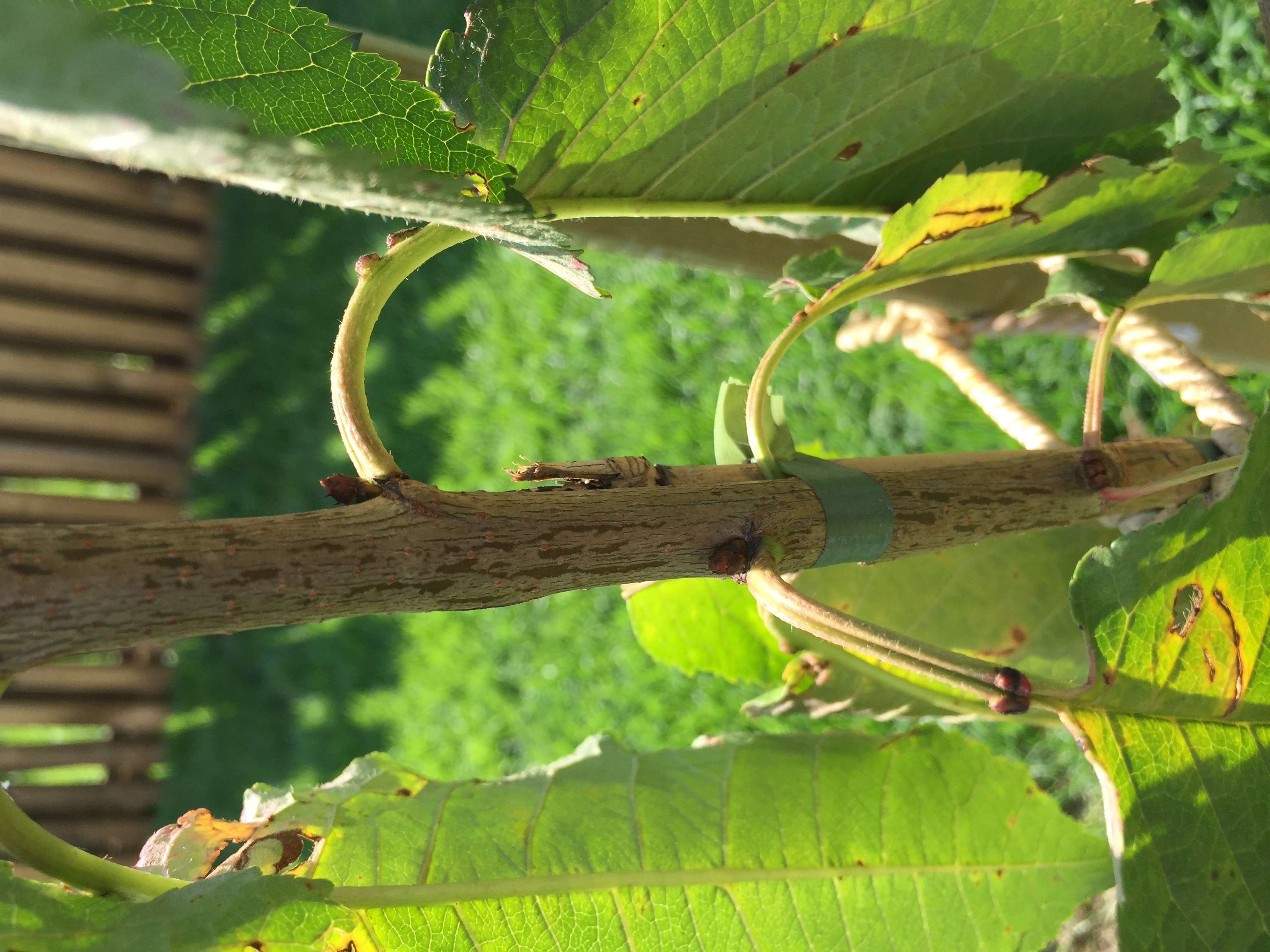wir haben Anfang August unseren ersten Baum gepflanzt - Kirsche Swing Selbstfruchtend - online bestellt bei Ahrens und Sieberz.