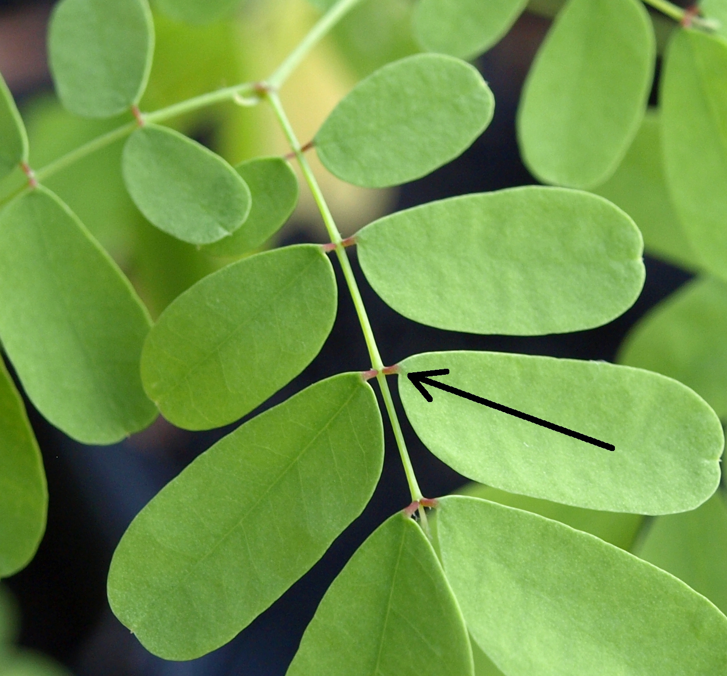 Neulich habe ich allerdings Unterschiede an den Stielen der Blättchen entdeckt und das eine Weile beobachtet. Bei einigen sind die Stiele so leicht rötlich, bei anderen sind sie komplett hellgrün. Ich habe versucht, das auf den Bildern durch die kleinen Pfeile kenntlich zu machen. Auf den Bildern kann man es leider ziemlich schlecht erkennen. In Wirklichkeit ist der Unterschied deutlicher.
