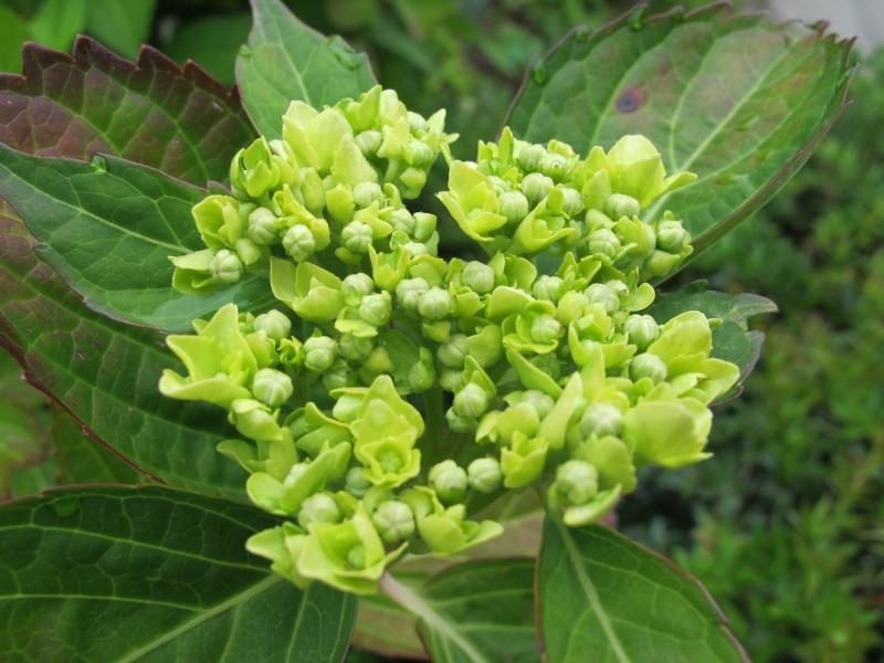 Hortensie noch ganz am Anfang vom Aufblühen: