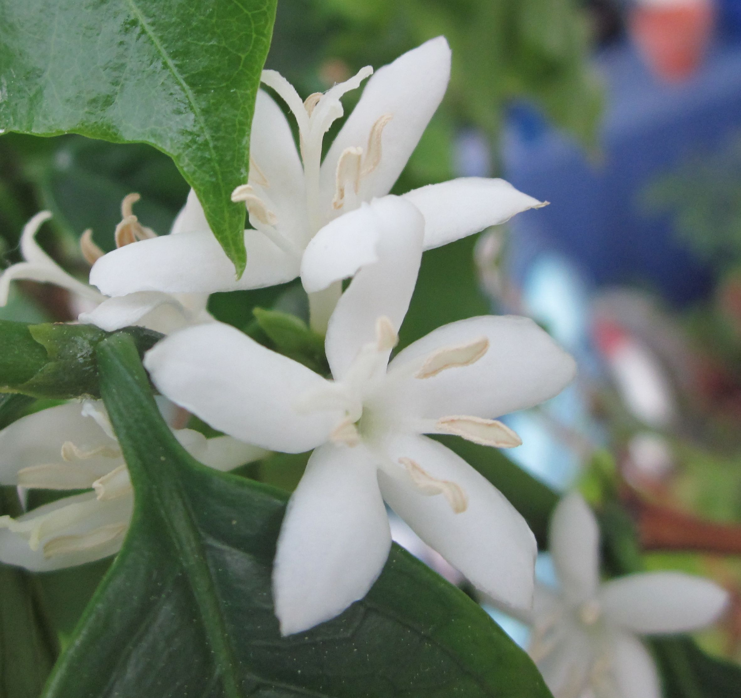 Eine meiner Kaffeepflanzen blüht derzeit mal wieder. Heute war ich schon mit dem Pinsel unterwegs