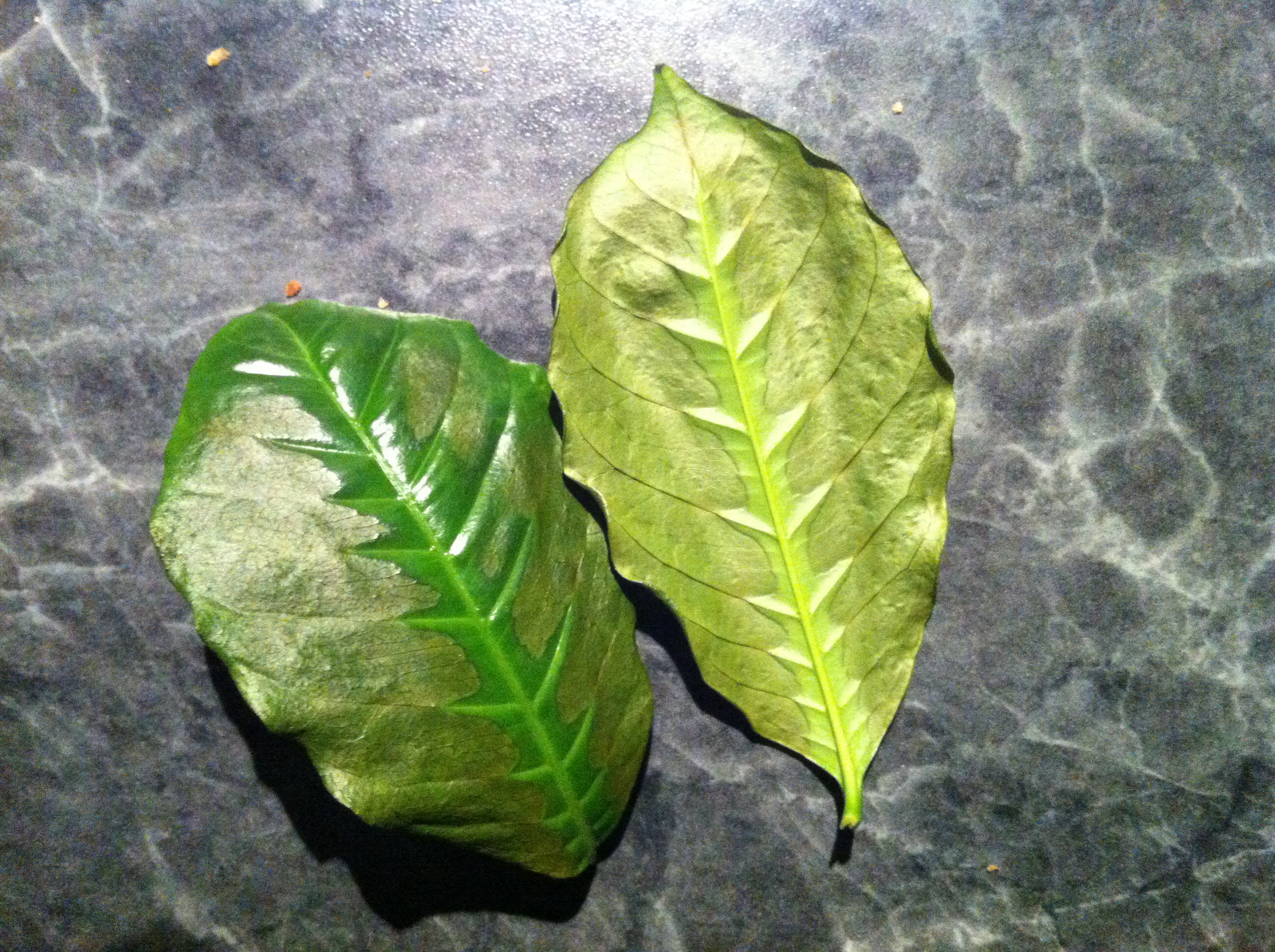 Unsere Kaffeepflanze ist inzwischen 4 Jahre alt. Vor ca vier Tagen ist mir aufgefallen, dass manche ihrer Blätter vom Blattrand her vertrocknen (s. Foto) und dann auch abfallen. Dieses Phänomen ist in den vergangenen vier Jahren nicht aufgetreten und die Pflanze wurde auch in letzter Zeit nicht umgestellt o.ä.
