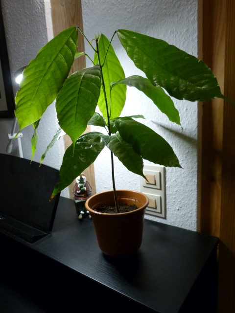 Noch passen alle (zusammen mit meinen Lucuma und Pacay Bäumen) auf einen großen Schreibtisch. Dort haben Sie direkt unter einem Dachfenster auch optimale Lichtverhältnisse und wachsen wie im Hochsommer. Am Ende will ich neben meinem großen Kakaobaum (1,20m) 2-3 kleine Kakaobäume behalten, für die restlichen ca. 25 habe ich schon unzählige Anfragen, wobei ich mir noch nicht sicher bin ob ein Versand im Frühjahr in einem Karton überhaupt sinnvoll möglich ist.