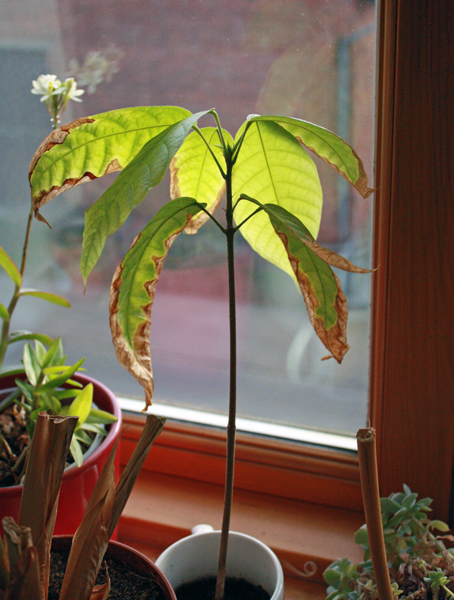 Der Kakaobaum wächst in Zimmerkultur nicht, da er aus den inneren Tropen kommt (Mexiko und Amazonas) und deshalb eine sehr hohe Luftfeuchtigkeit braucht, etc.