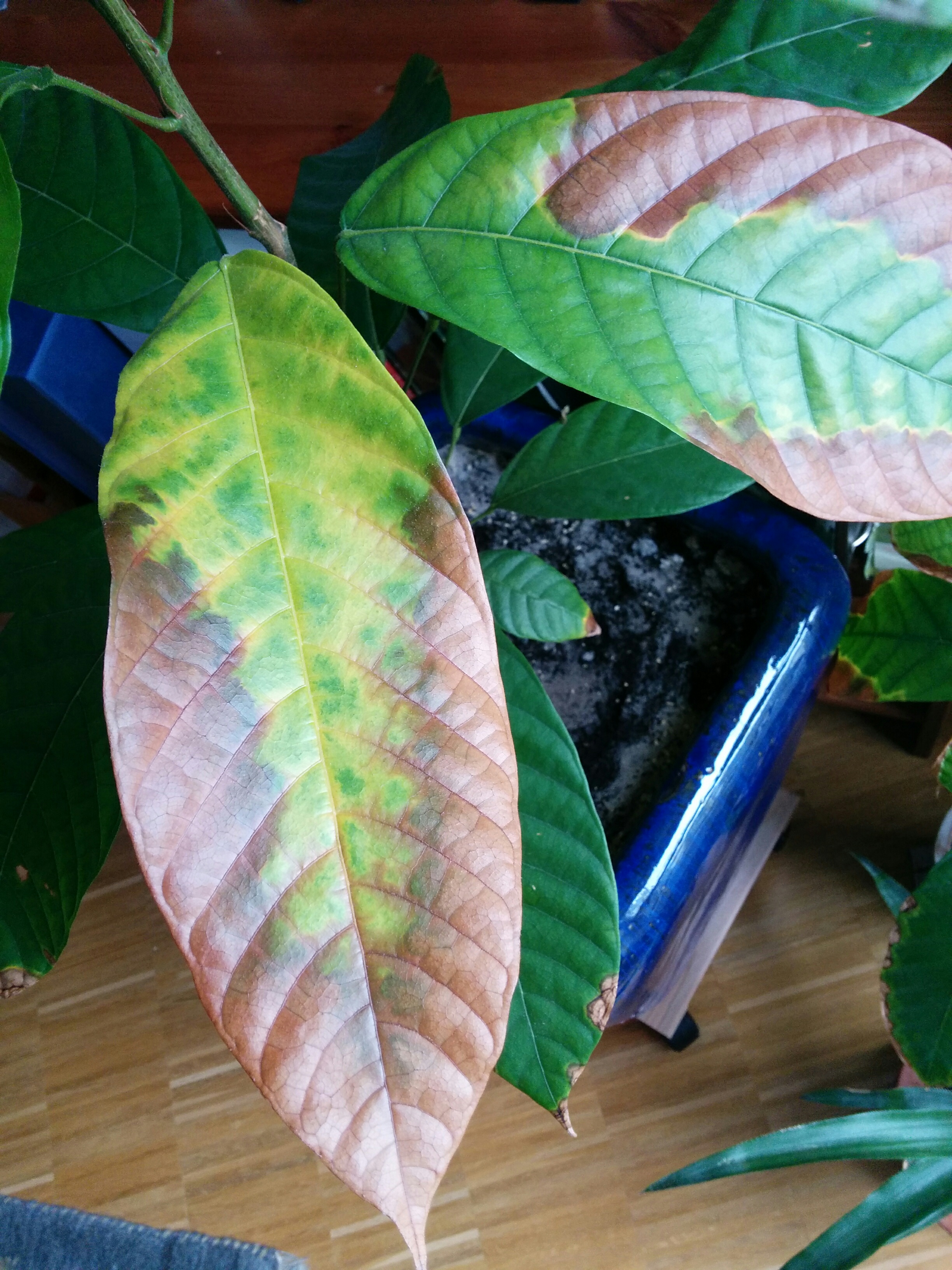 ich habe zwei Kakaopflanzen seit einem Jahr. Mittlerweile bekommen sie allerdings braune Blätter.